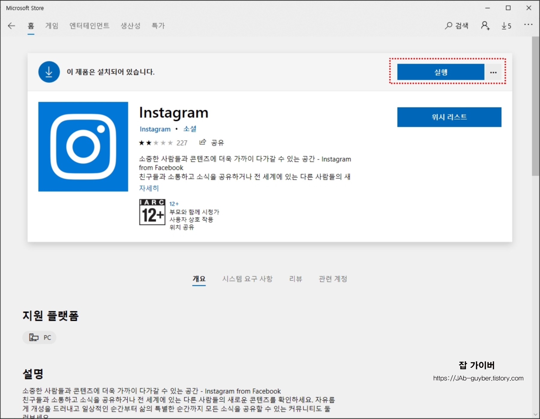 윈도우10 인스타그램 설치
