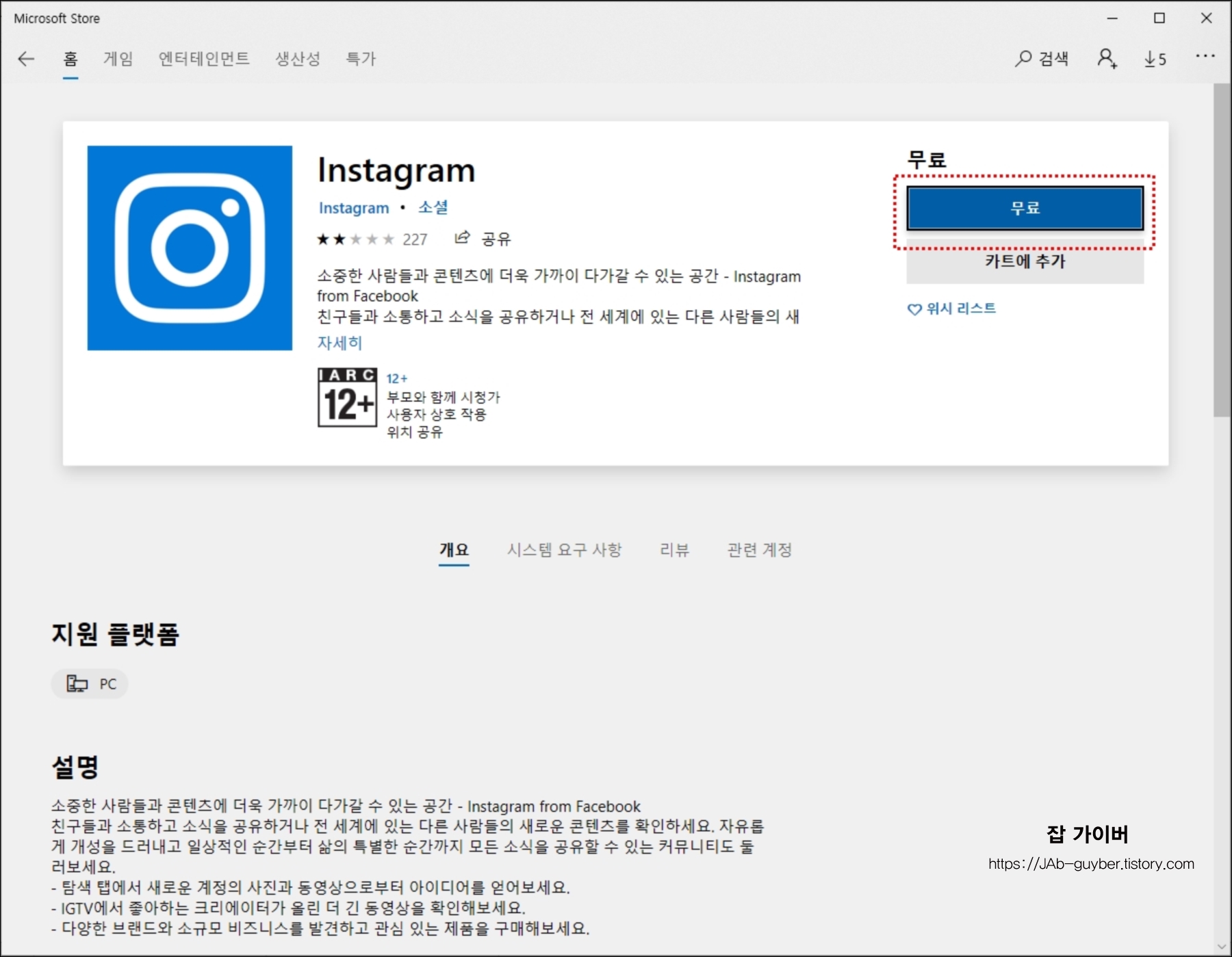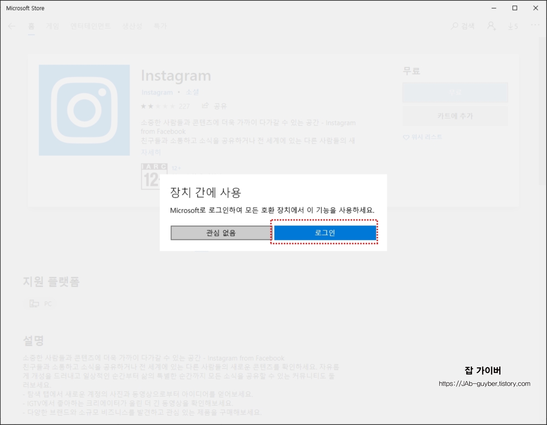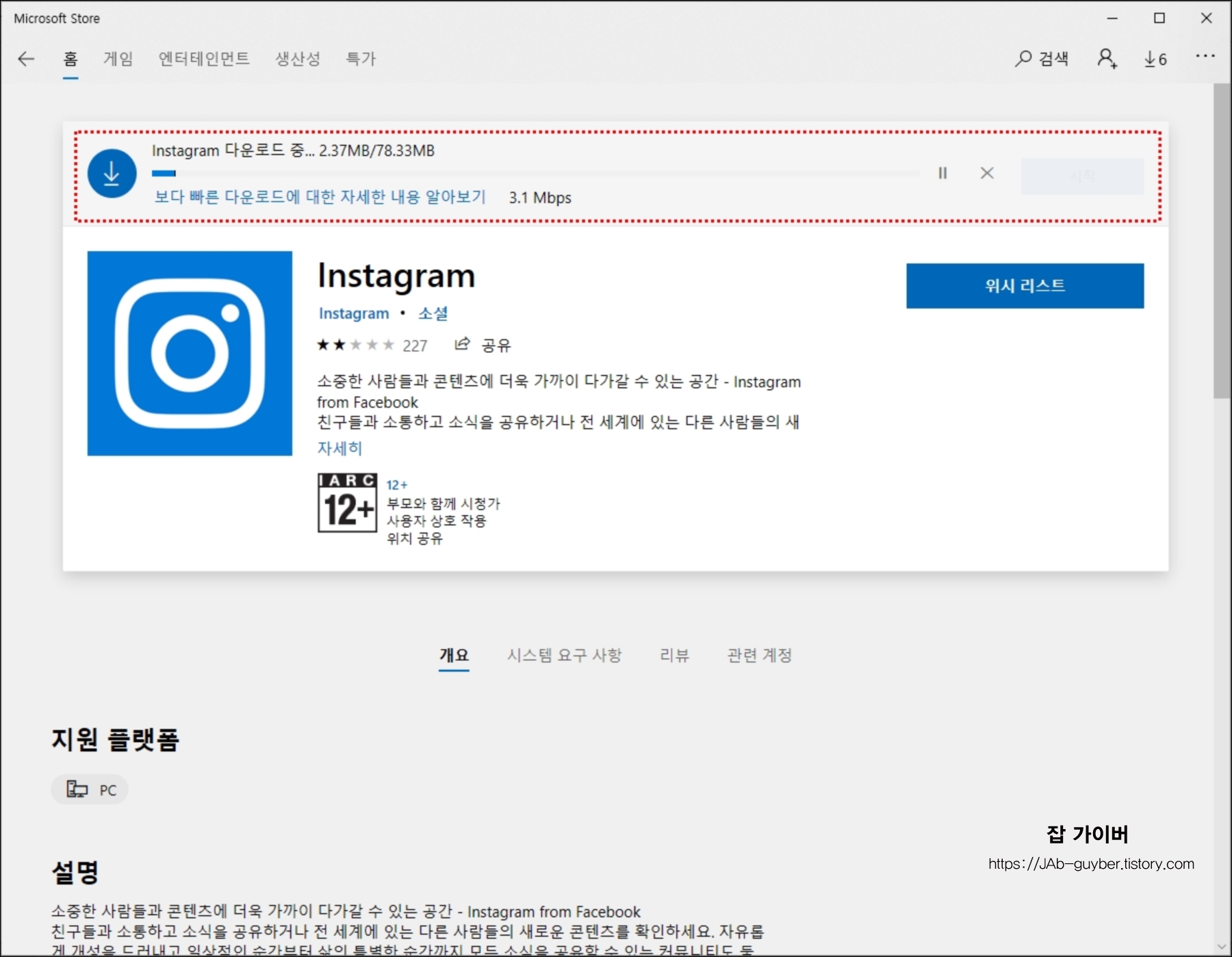 윈도우10 인스타그램 설치