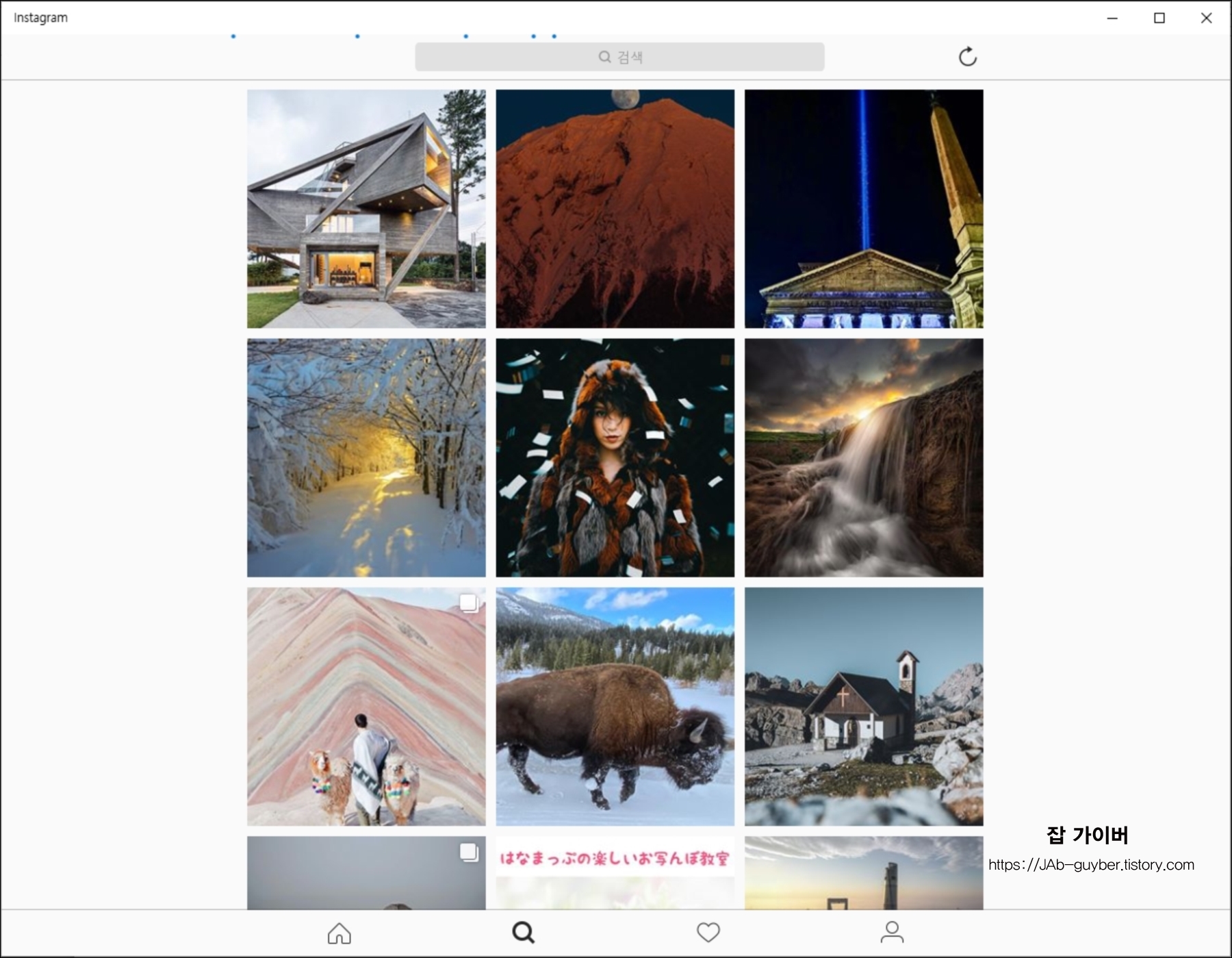 인스타그램 어플리케이션이 PC에서 실행됩니다.