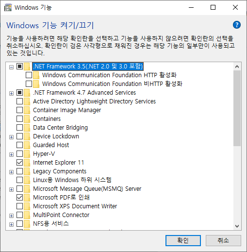 - 설치 프로그램이 .NET Framework 3.5 요구 팝업을 표시