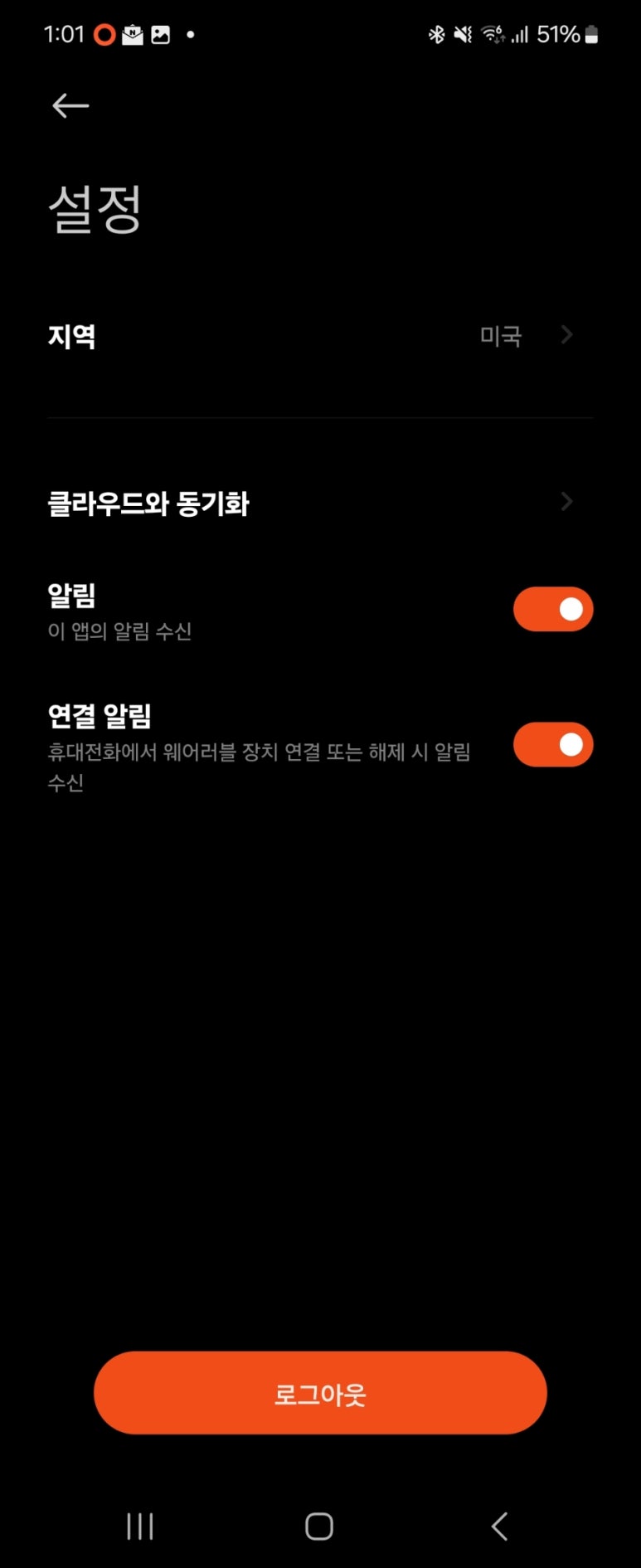 1) Mi Fitness 앱 지역을 미국으로 변경