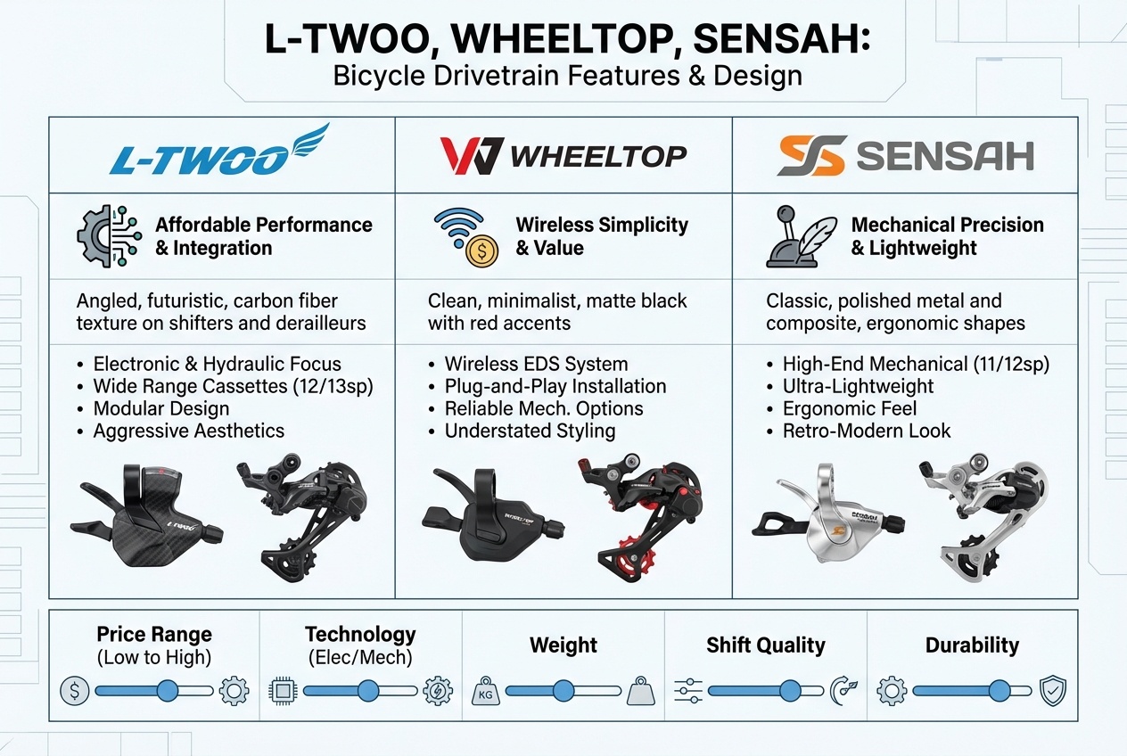 로드 자전거 구동계를 고를 때 예전에는 시마노냐 스램이냐 정도로 정리되는 경우가 많았습니다. 그런데 지금은 이야기가 꽤 달라졌습니다. 시마노(Shimano), 스램(SRAM), 캄파놀로(Campagnolo) 같은 메이저 브랜드는 여전히 기준점 역할을 하고 있지만, 엘투(L-TWOO), 휠탑(Wheeltop) 같은 중국산 브랜드가 전동 로드 구동계까지 본격적으로 치고 올라오면서 선택 기준이 완전히 바뀌고 있습니다.