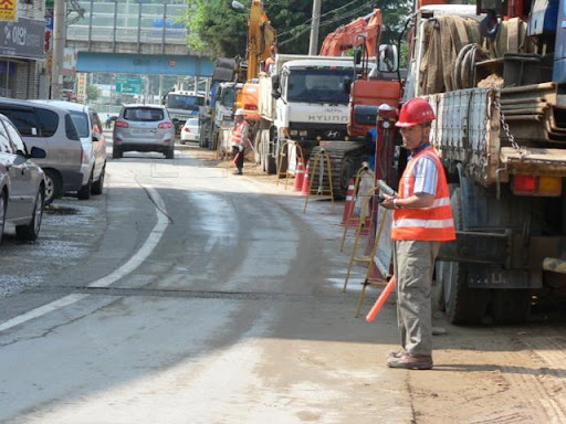 교통 통제형 신호수 공사구간 교통 유도 도로 공사, 굴착, 전기·통신 공사 작업구간 보호, 차량 흐름 조정