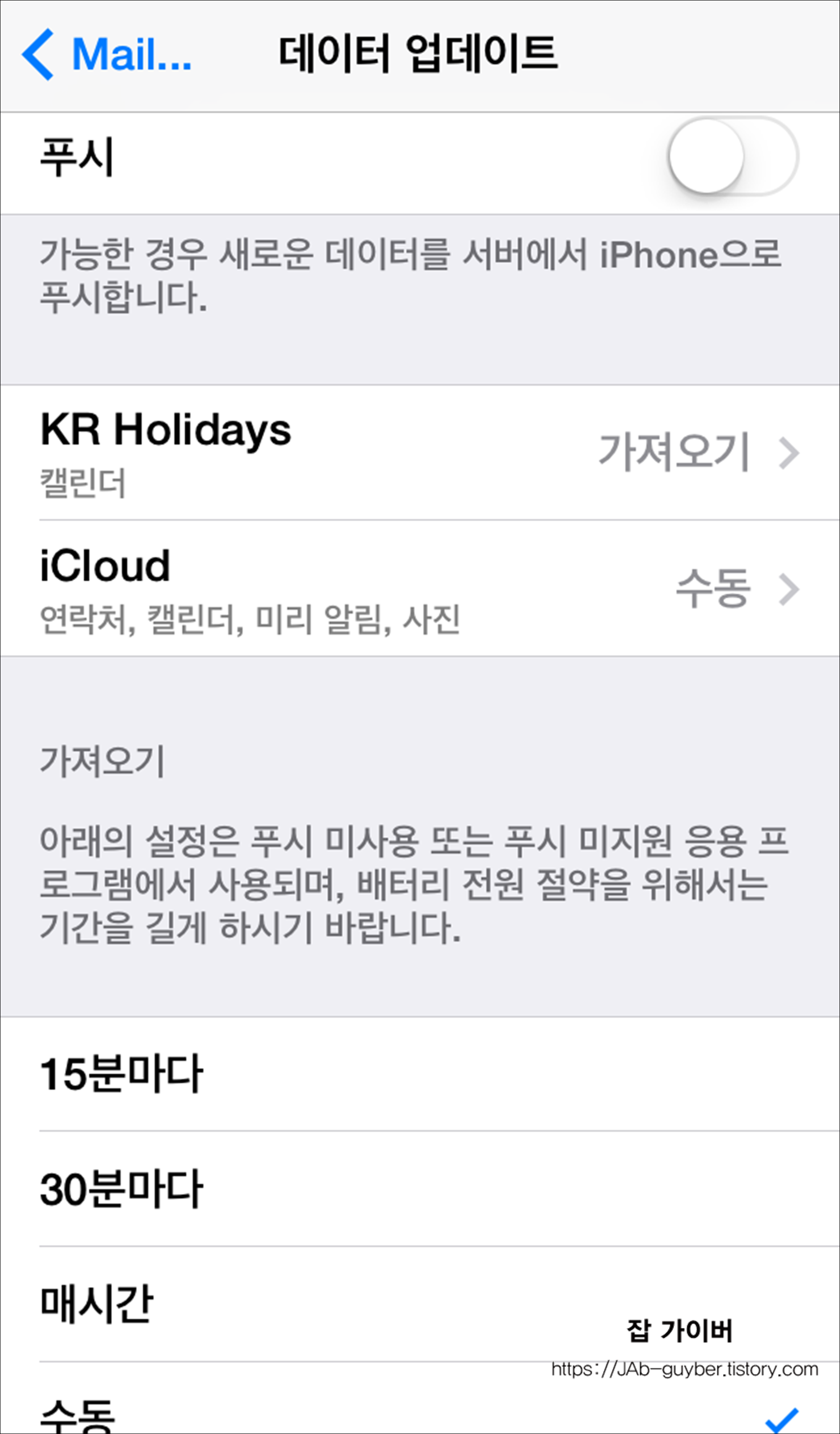 특히 사진을 많이 찍는 날, 메일 계정이 여러 개인 분들은 동기화가 배터리를 조금씩 가져갑니다.