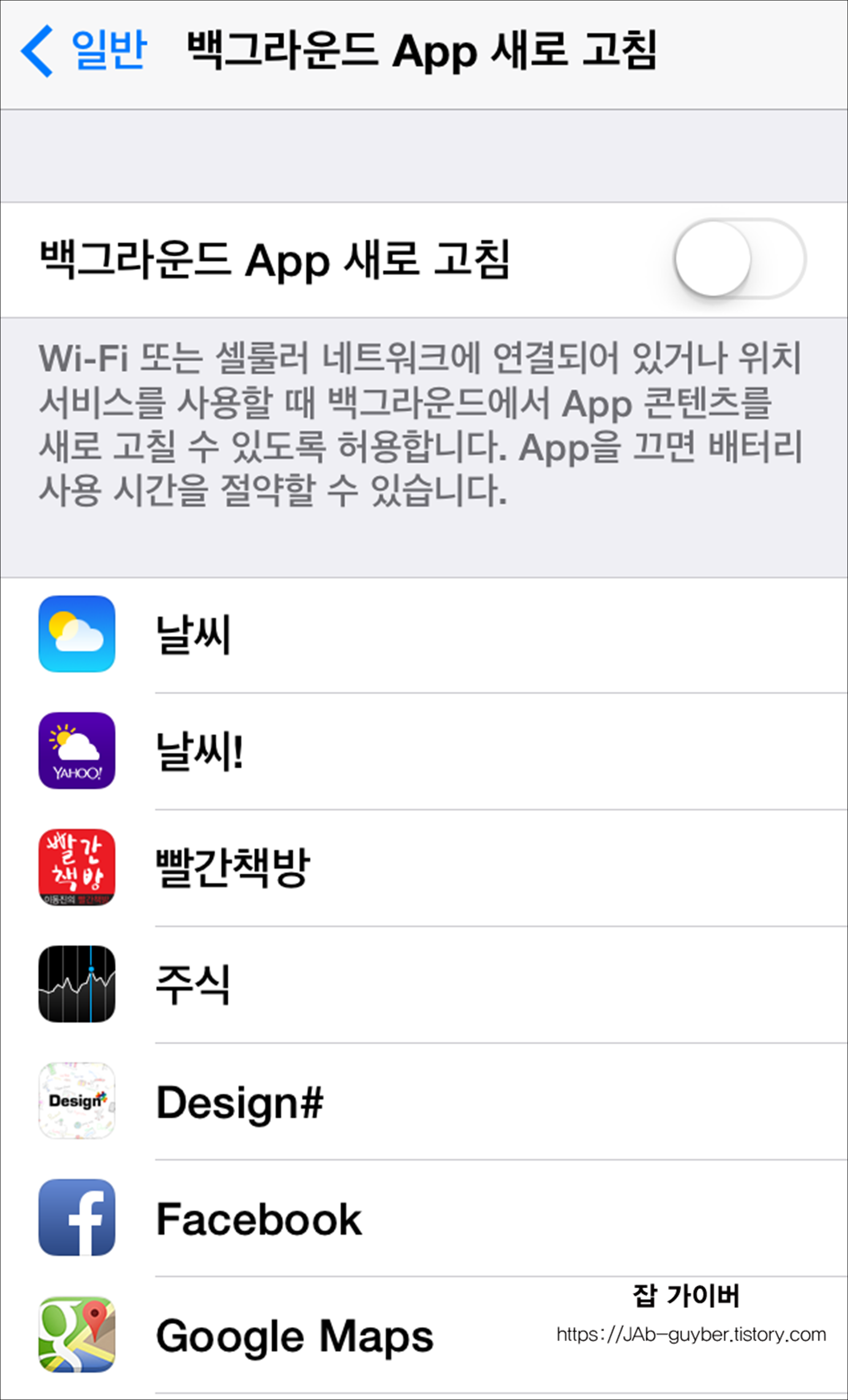 아이폰 배터리의 은근한 복병이 백그라운드 새로고침입니다.