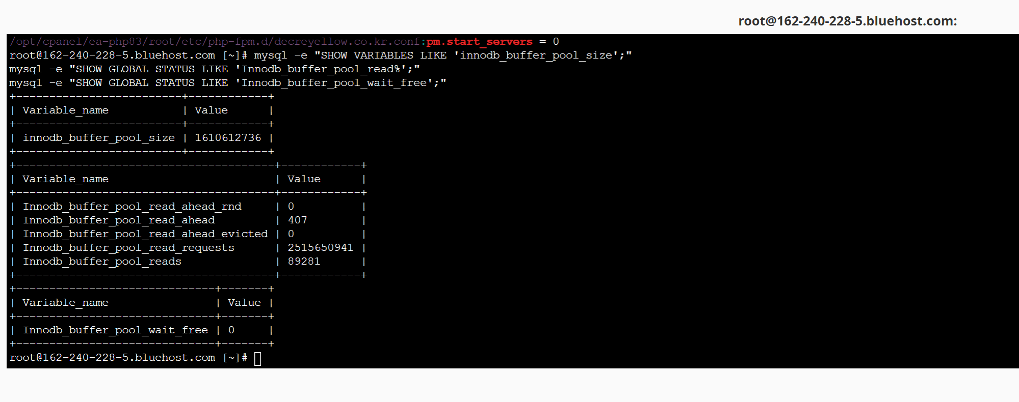 OPcache도 이미 256MB로 잡혀 있고, InnoDB Buffer Pool도 1.5GB 수준이라 데이터베이스 쪽 메모리가 비정상적으로 작은 것도 아니었습니다.