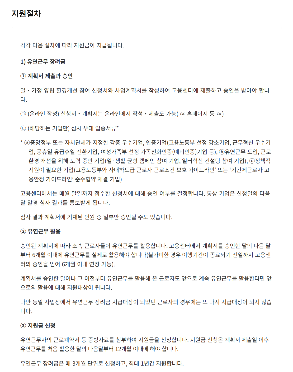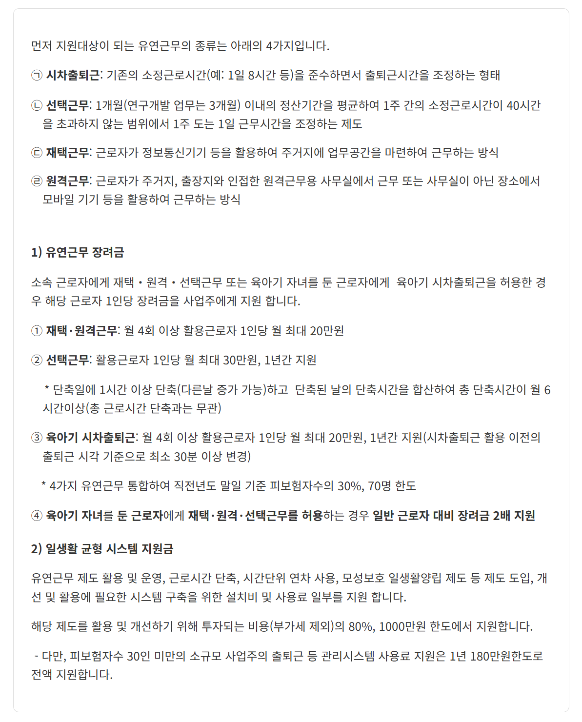 실제 신청 단계에서는 지원금이 붙는 유형과 회사 내부에서만 운영하는 근무형태를 구분해서 봐야 합니다.