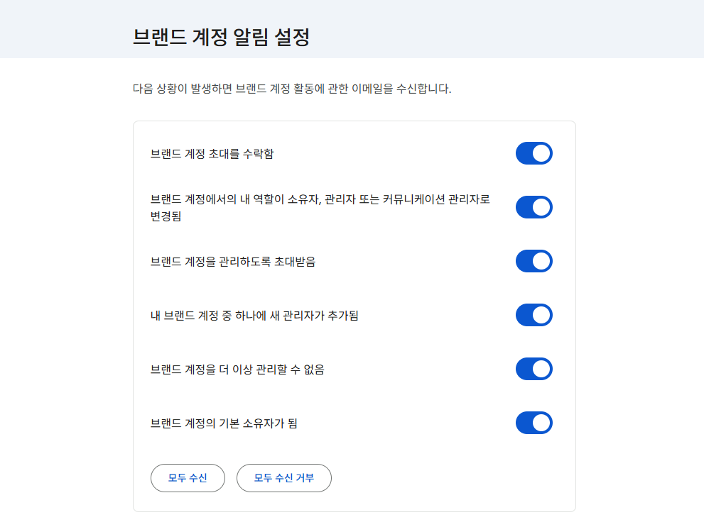 | 브랜드 계정 권한 | Google 브랜드 계정 관리 | 기본 소유자 변경과 이전 작업에 필요 |