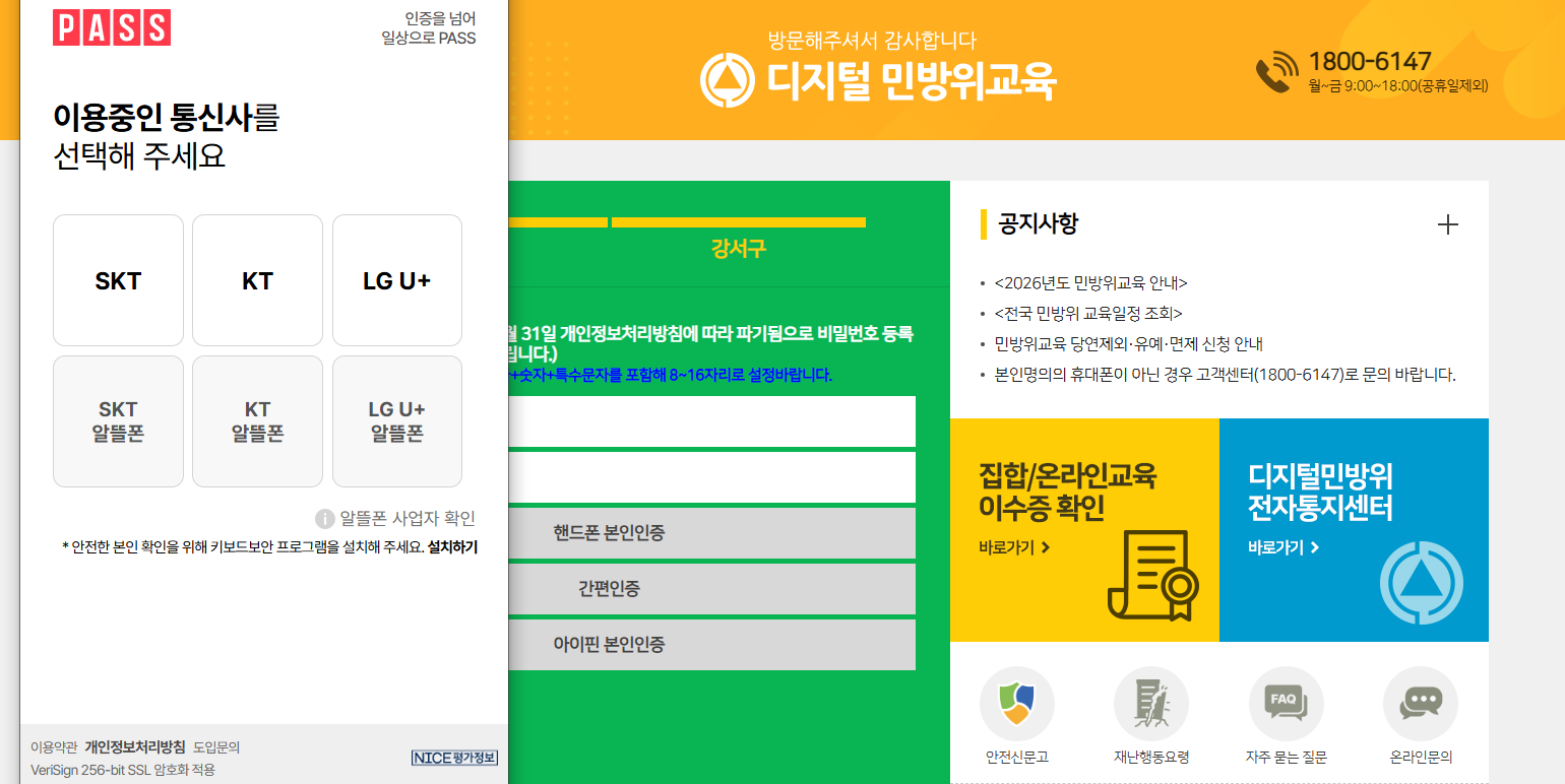 많이들 휴대폰 인증만 떠올리지만, 민방위 교육 시스템은 메뉴에 따라 신용카드 인증, 아이핀 인증, 주민등록증 인증 같은 방식이 함께 제공될 수 있습니다.