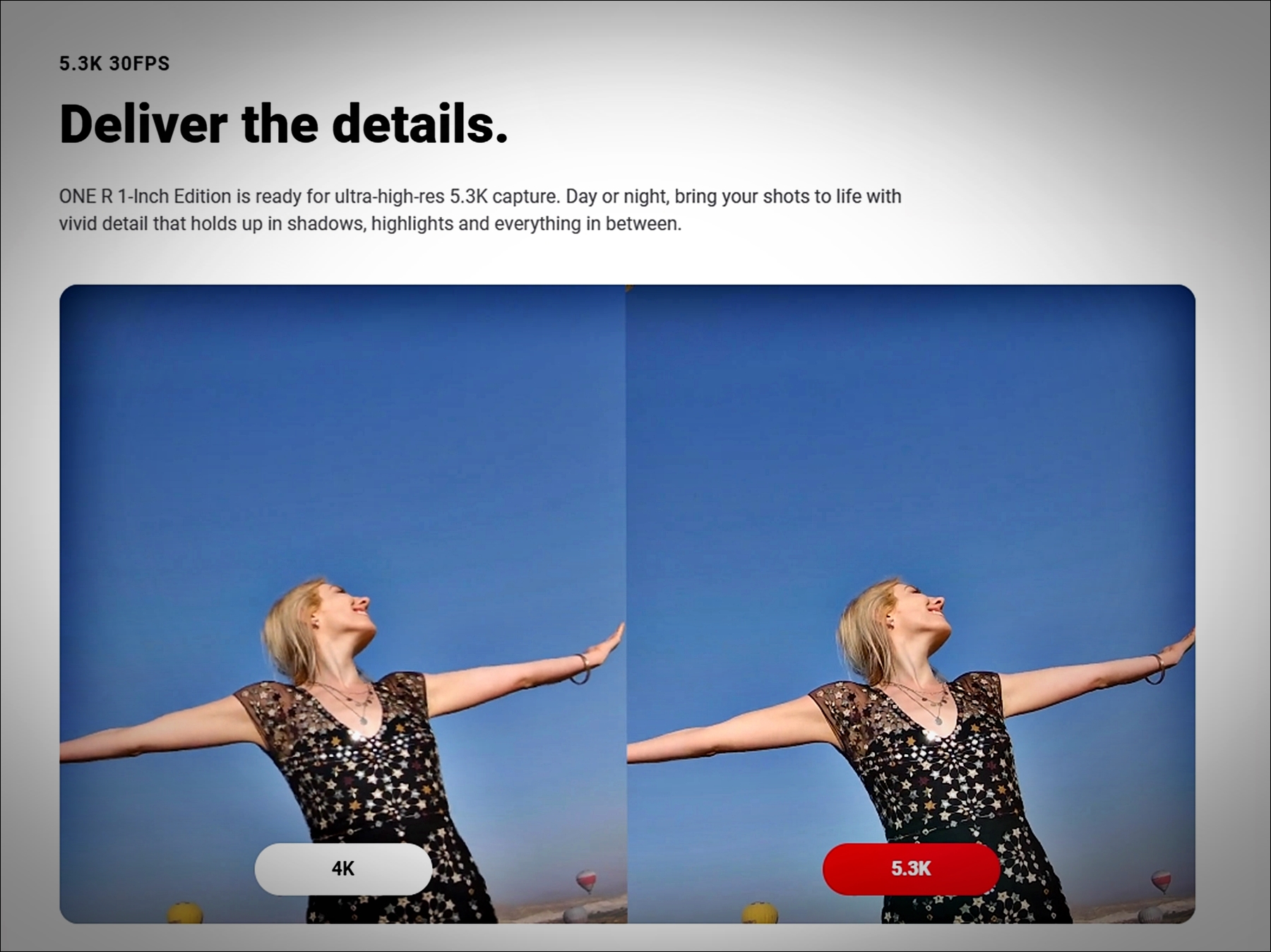 5.3K 고해상도 1인치 센서가 탑재되어 낮이나 밤 그림자 하이라이트등 모든 이미지를 생동감 있는 촬영이 가능합니다.