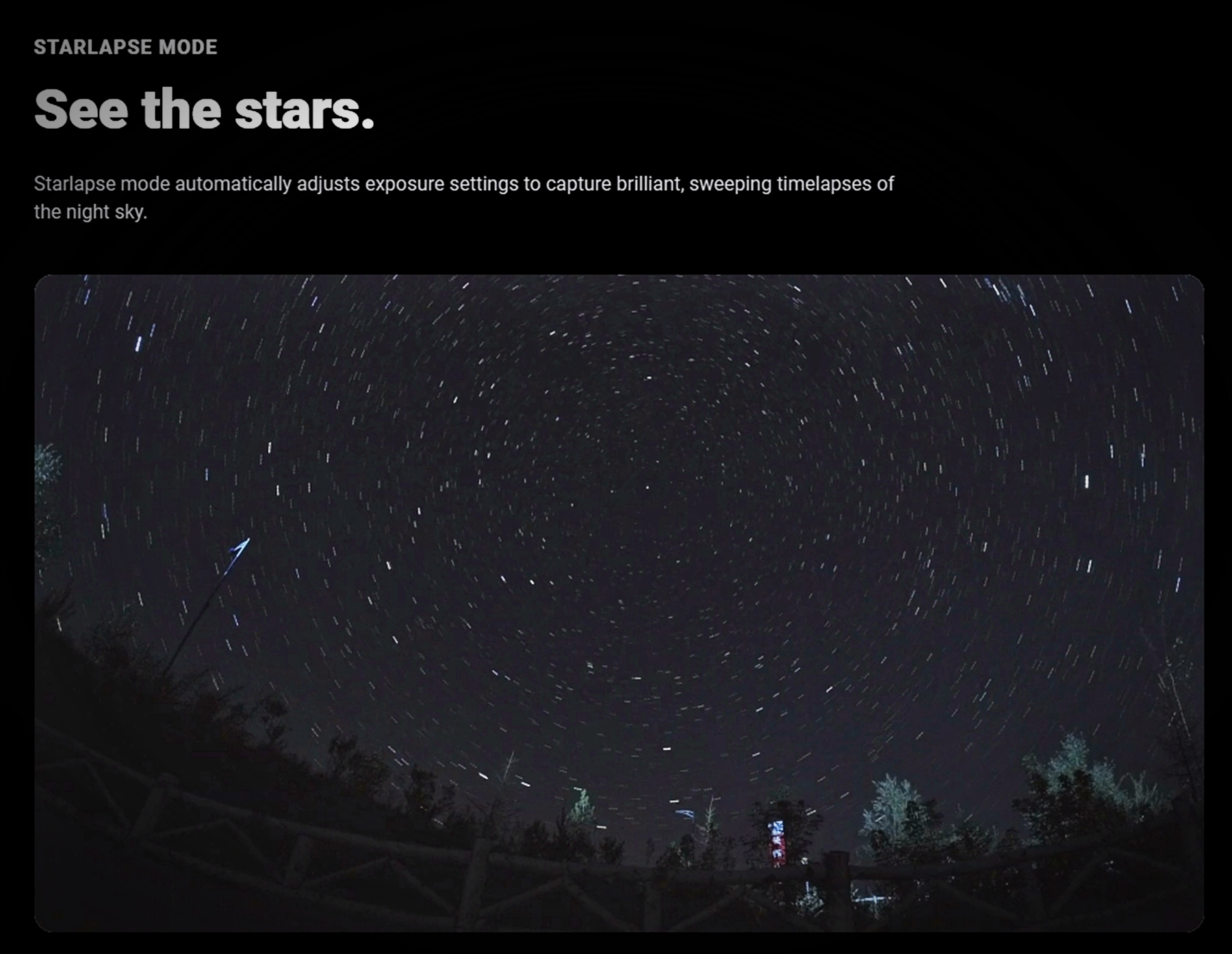 Starlapse 스타랩스 기능을 사용하며 ㄴ노출설정을 자동으로 조정해서 밤하늘의 화려한 환경을 자연스럽게 촬영이 가능합니다.