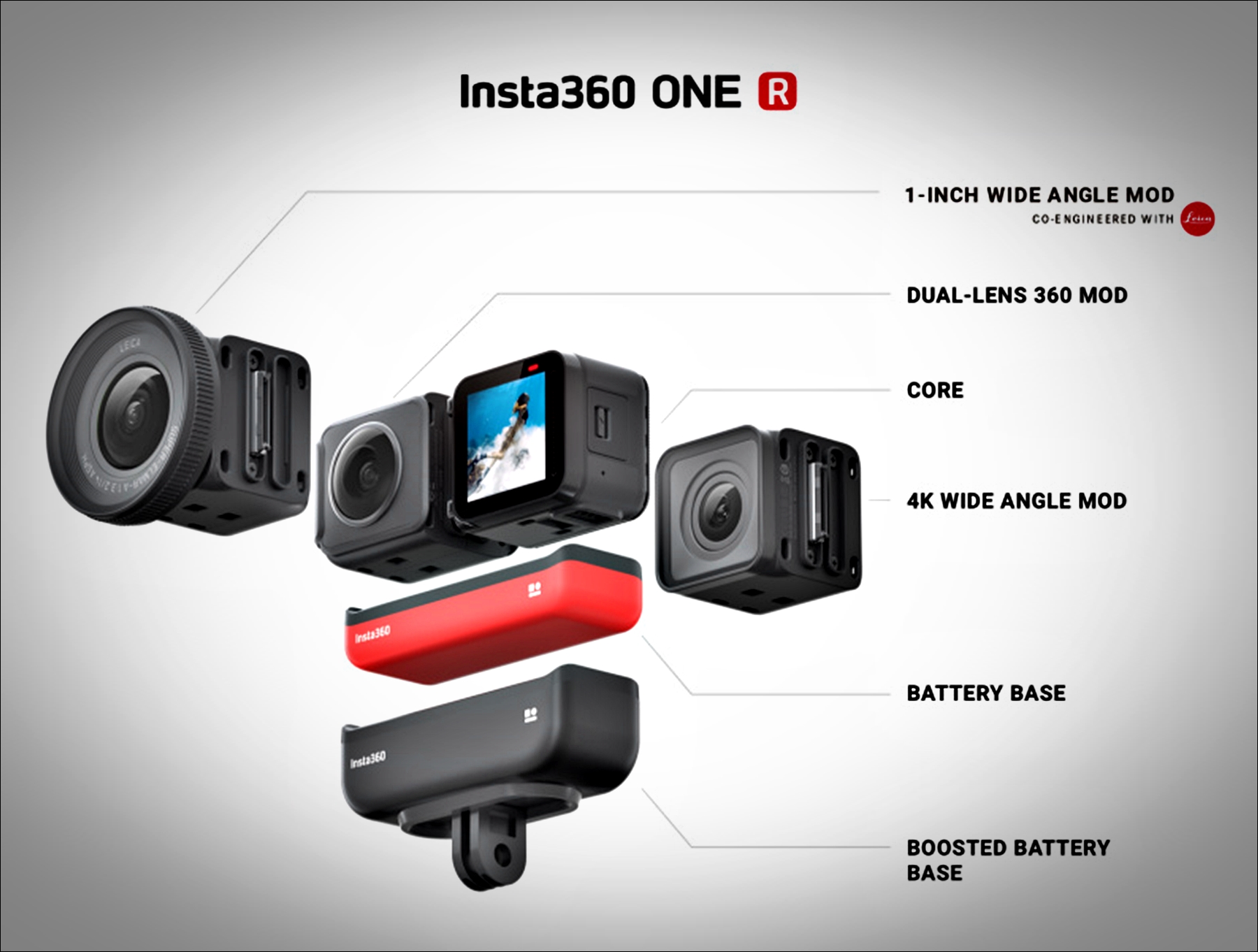 그리고 1인치 버전인 라이카렌즈를 탑재한 제품도 함께 출시되었으며 그외에도 360도 카메라 렌즈등 총 3개의 카메라 모듈로 된 액션카메라로서 원하는 카메라렌즈를 모듈식으로 블럭처럼 끼워 사용할 수 있는 구조입니다.