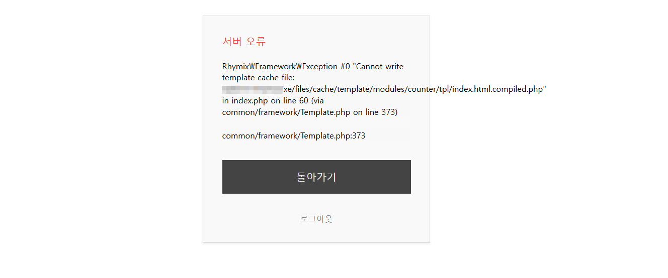 XE에서 라이믹스로 업데이트한 뒤 관리자 설정 화면이나 일부 플러그인, 애드온 화면에 들어갔을 때 갑자기 서버 오류가 뜨는 경우가 있습니다. 대표적으로 보이는 문구는 Cannot write template cache file 같은 형태입니다. 처음 보면 라이믹스 자체가 망가진 것처럼 느껴지지만, 실제로는 그보다 단순한 경우가 많습니다.