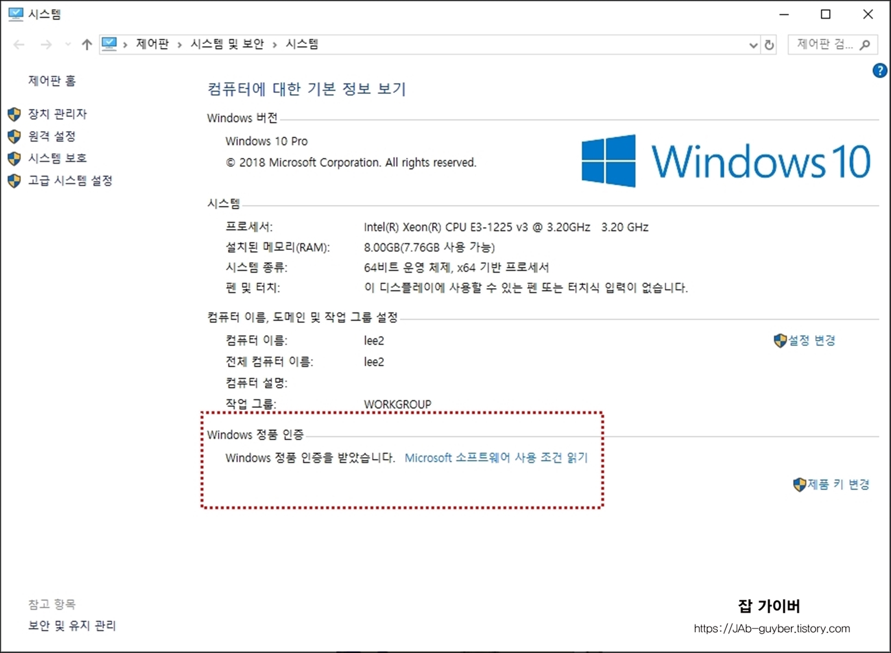 윈도우10 정품인증 확인 위치