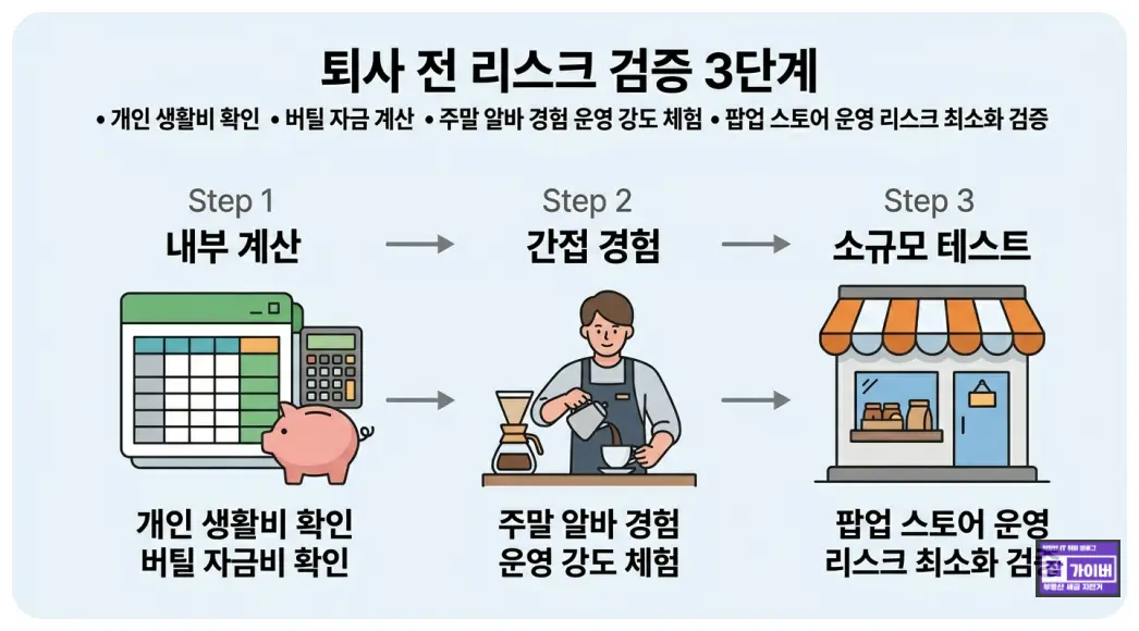 개인적으로는 바로 퇴사 후 창업보다, 먼저 작은 형태로 검증하는 쪽이 더 낫다고 봅니다.