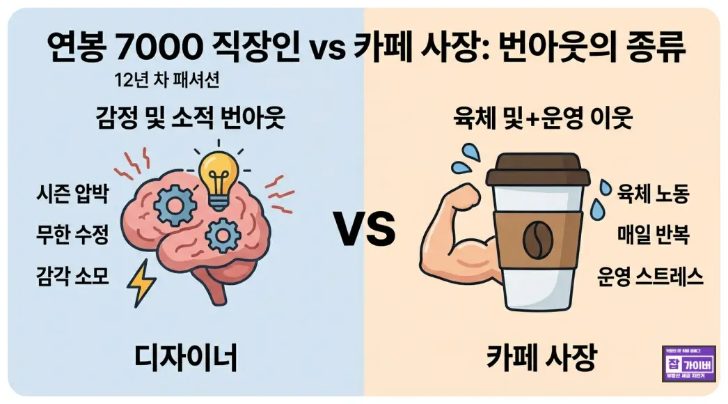 연봉 7000만 원을 받는 12년 차 패션디자이너가 커피숍 자영업을 고민하는 마음은 충분히 이해됩니다.