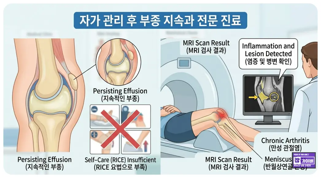 | 쉬어도 붓기가 계속 남음 | 단순 과사용이 아닐 수 있음 |