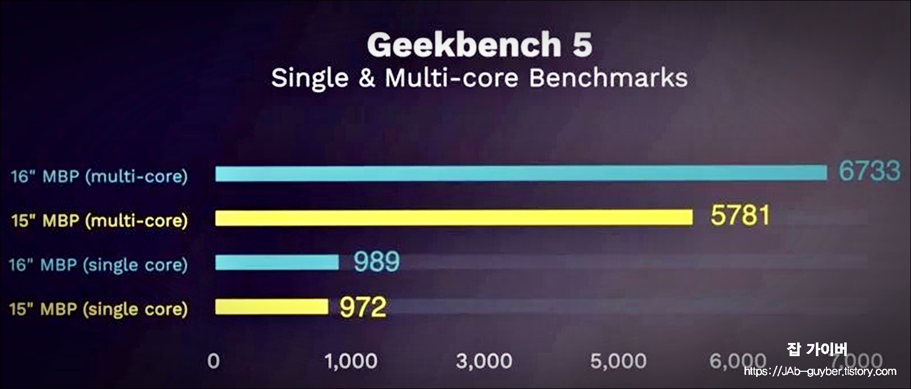OpenCL 테스트에서 16 인치 MacBook Pro는 15 인치 MacBook Pro의 17904 점수와 비교하여 30608 점을 얻었고, Metal 테스트에서 16 인치 MacBook Pro는 15 인치 MacBook Pro의 점수에 비해 29840 점을 받았습니다.