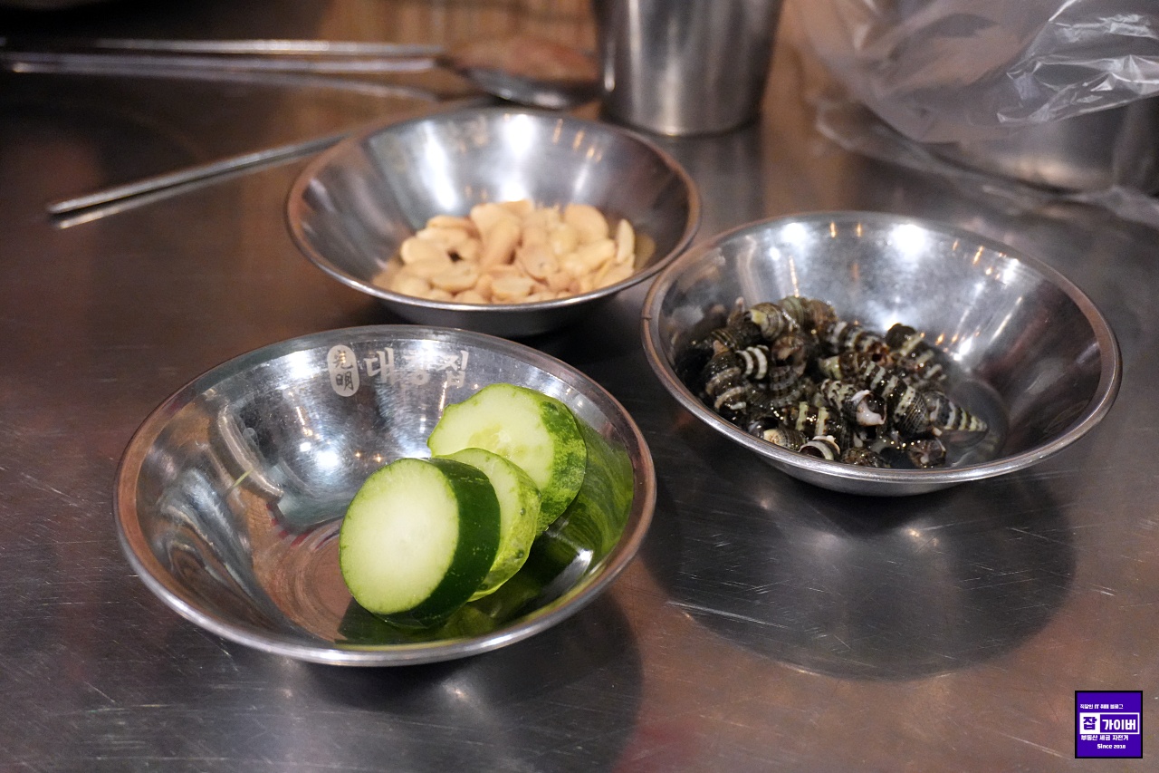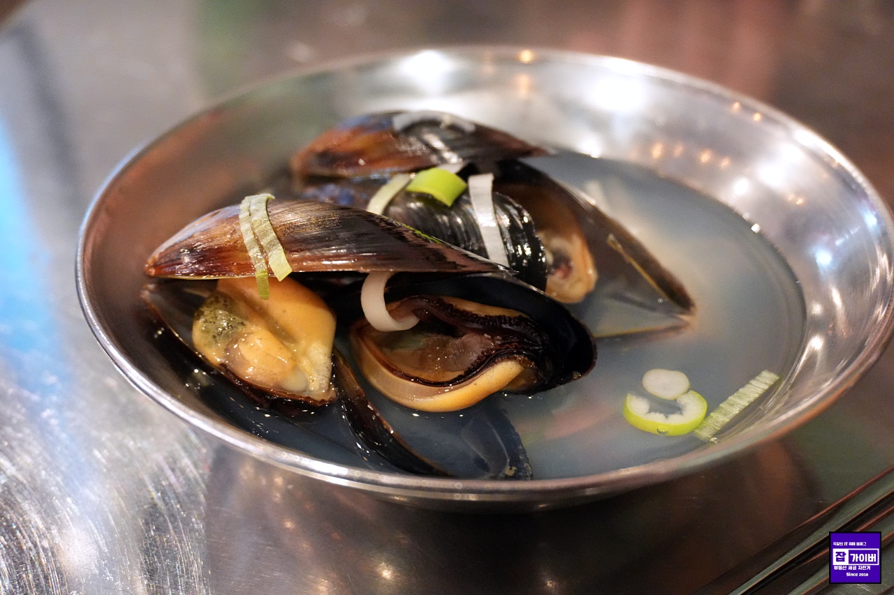 여긴 기본으로 나오는 구성도 꽤 알찼습니다. 입이 심심하지 않게 먹을 수 있는 땅콩, 그리고 국물 한 숟갈 뜨면 속이 편안해지는 홍합탕까지 같이 나오는데, 특히 홍합살이 제법 실해서 시작부터 기분이 좋았어요.