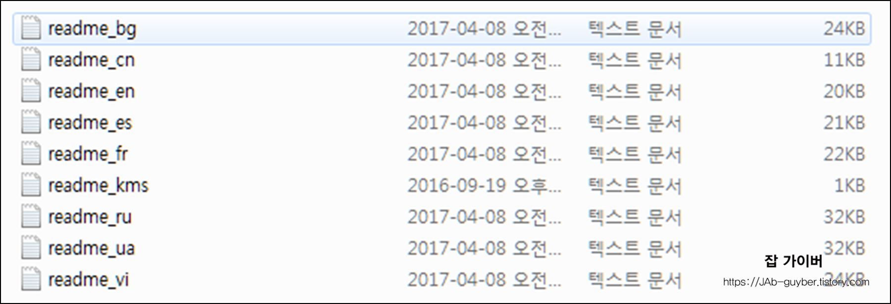 readme 폴더에는 각각의 지원하는 언어가 잇으며 영어 및 프랑스어,러시아어등 다양한 언어를 지원합니다.