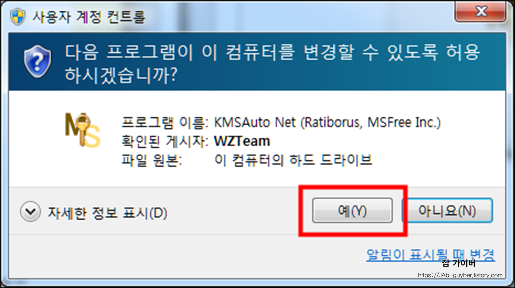 사용자 계정 컨트롤이 뜬다면 y(예)