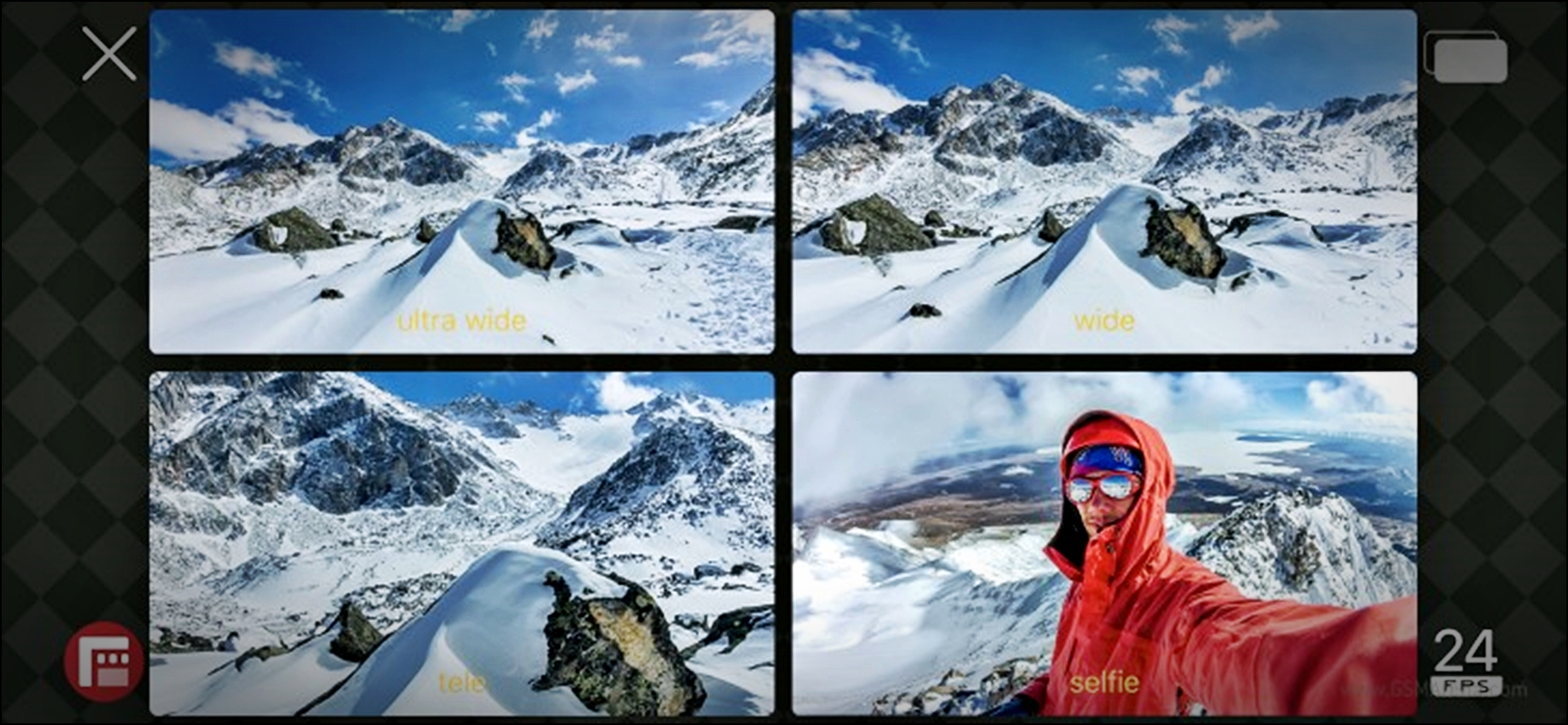 분할 화면 모드는 화면에 선택된 모든 카메라의 피드를 한 번에 표시하며 최종 비디오에는 뷰파인더에 표시되는 모든 카메라의 피드가 포함됩니다.