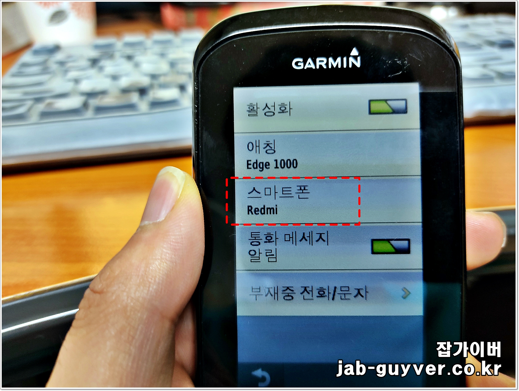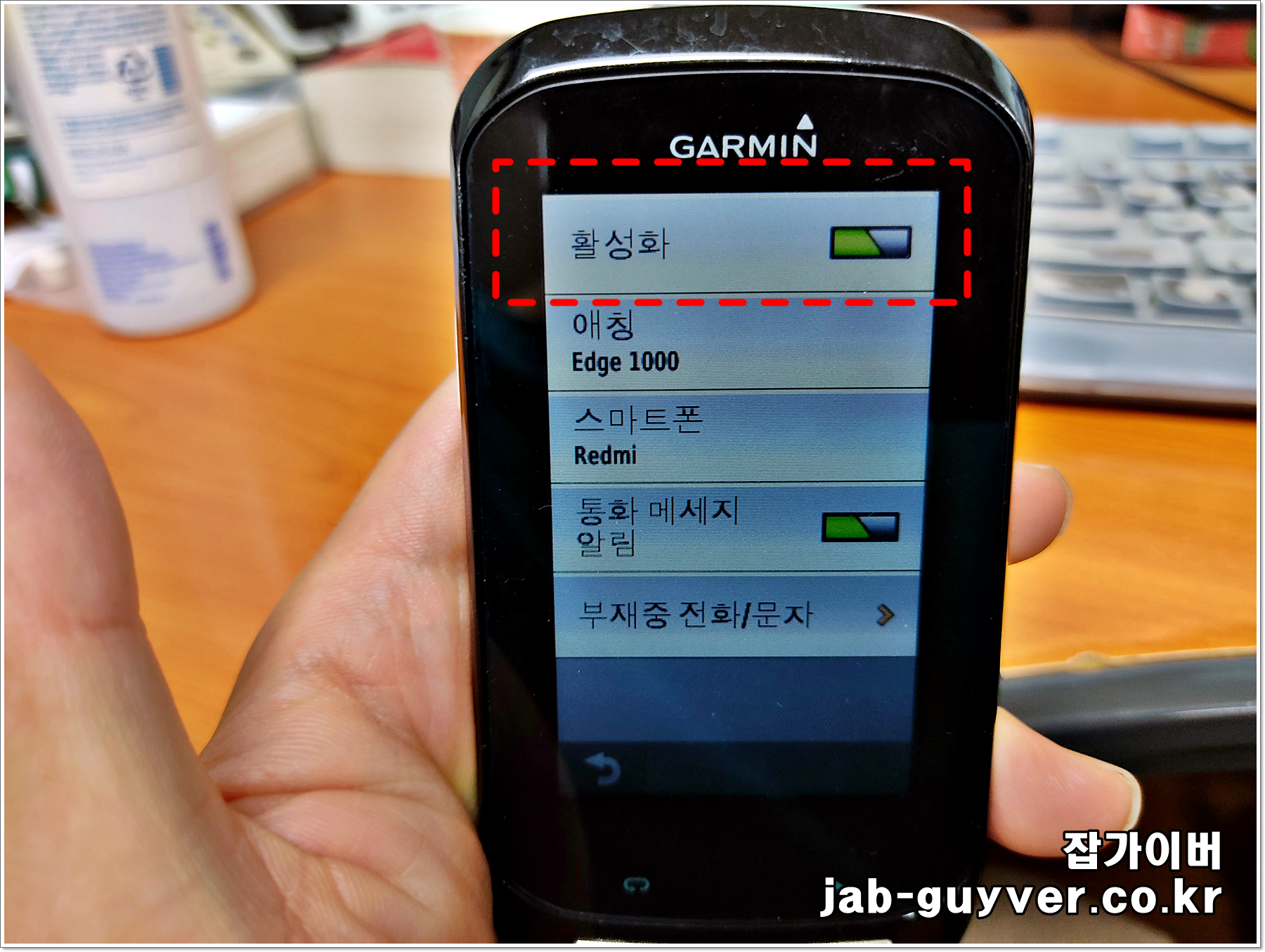 그리고 현재 핸드폰이 블루투스가 켜져있는지 그리고 가민에더 핸드폰 연결이 활성화되어 있는지 확인하세요