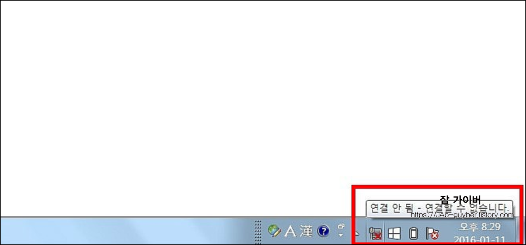 그럼 하단에 알림창에 인터넷 연결 안됨 - 연결할 수 없습니다. 알림을 확인합니다.