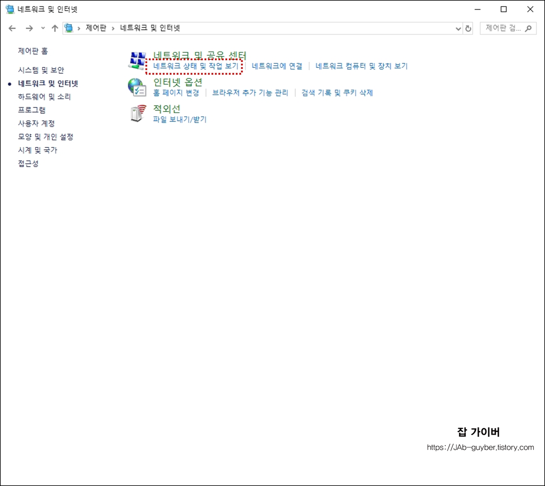제어판 → 네트워크 및 인터넷으로 들어갑니다.
