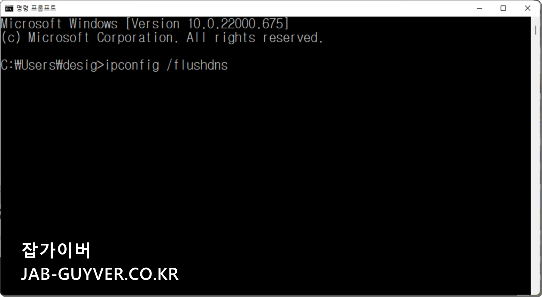 위 명령을 입력하고 엔터를 누르면 “Windows IP 구성의 DNS 확인자 캐시를 플러시했습니다.”와 비슷한 메시지가 표시됩니다.