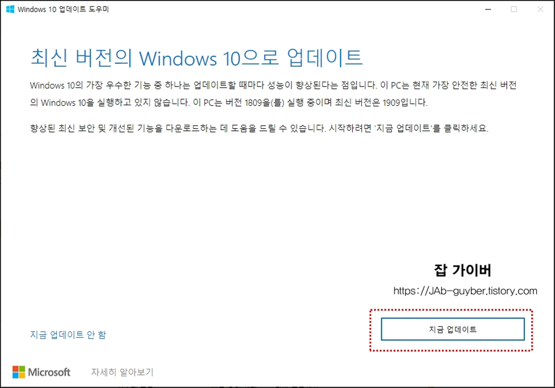 현재 최신 버전의 윈도우10으로 업그레이드할 수 있으며 최신 버전은 1809 버전입니다.
