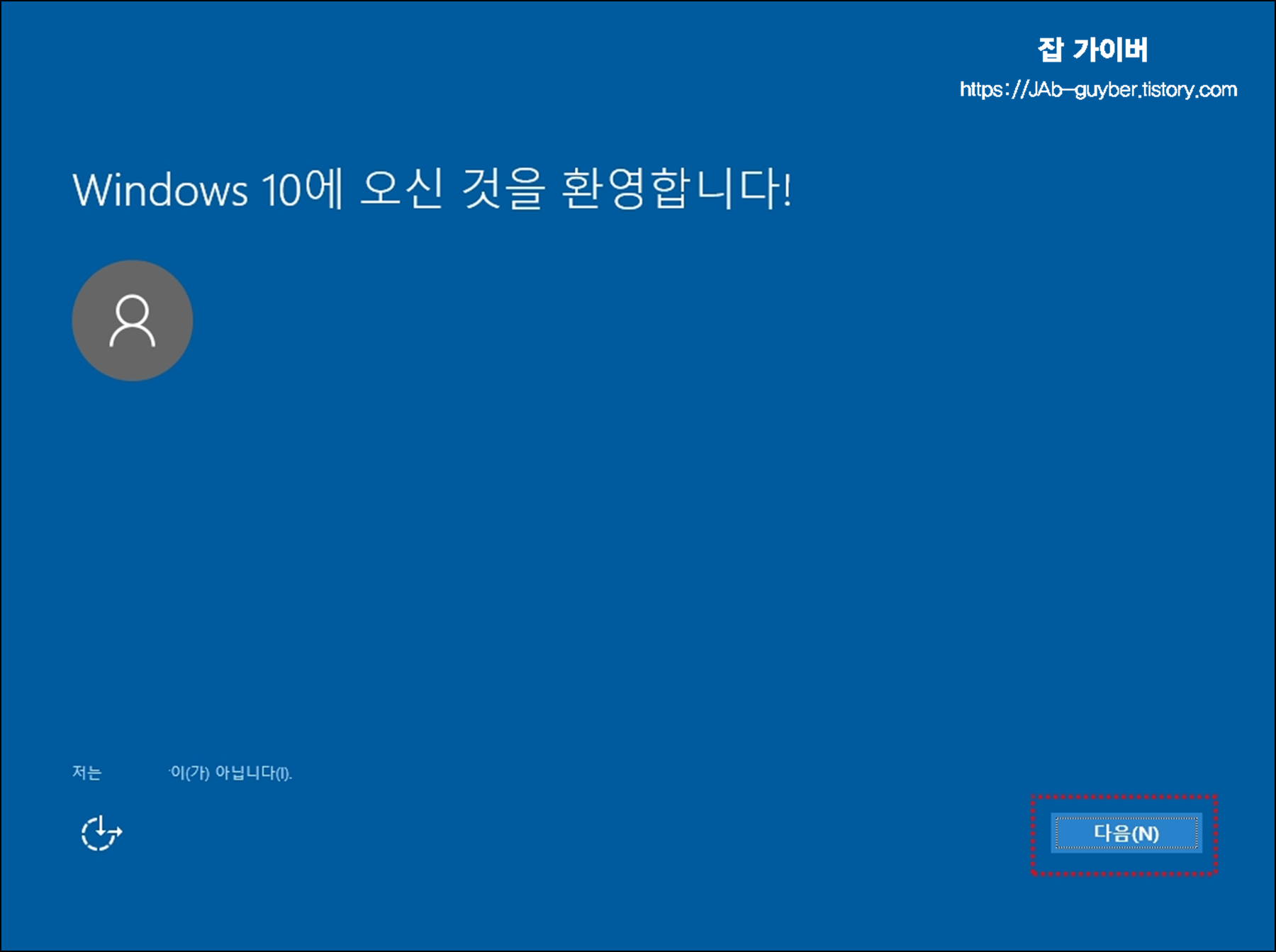 모든 설치가 완료되었고 윈도우10 설정이 진행됩니다.