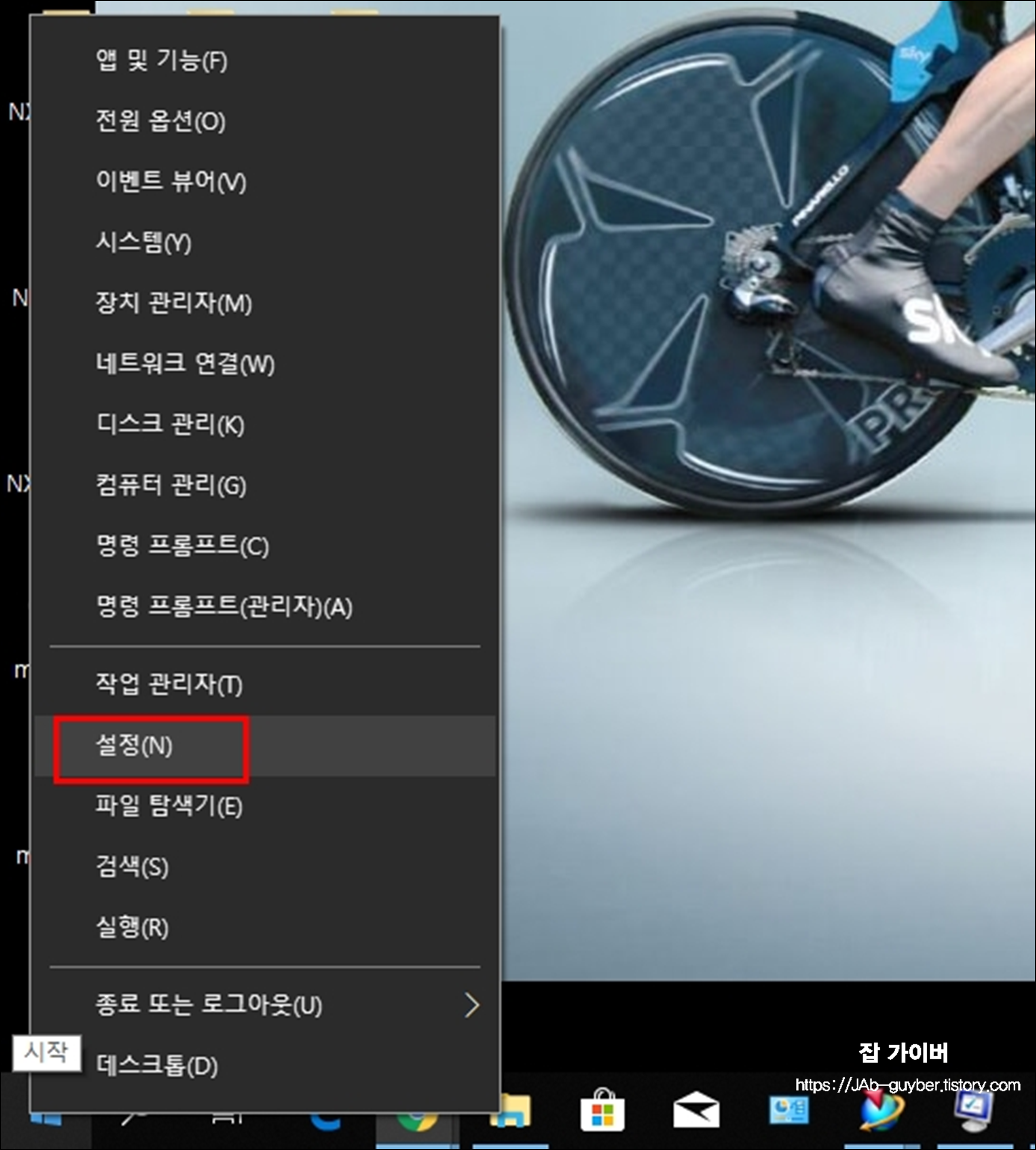 윈도우 마크를 우클릭해 설정으로 들어간 뒤, 업데이트 및 보안을 선택한다.