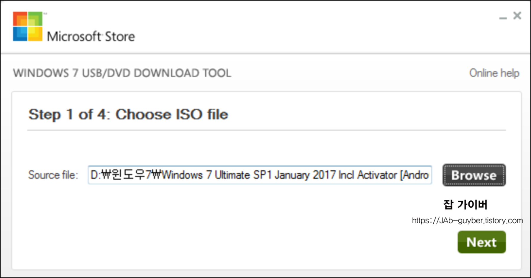설치 완료 후 Windows 7 USB DVD Download Tool을 실행합니다.