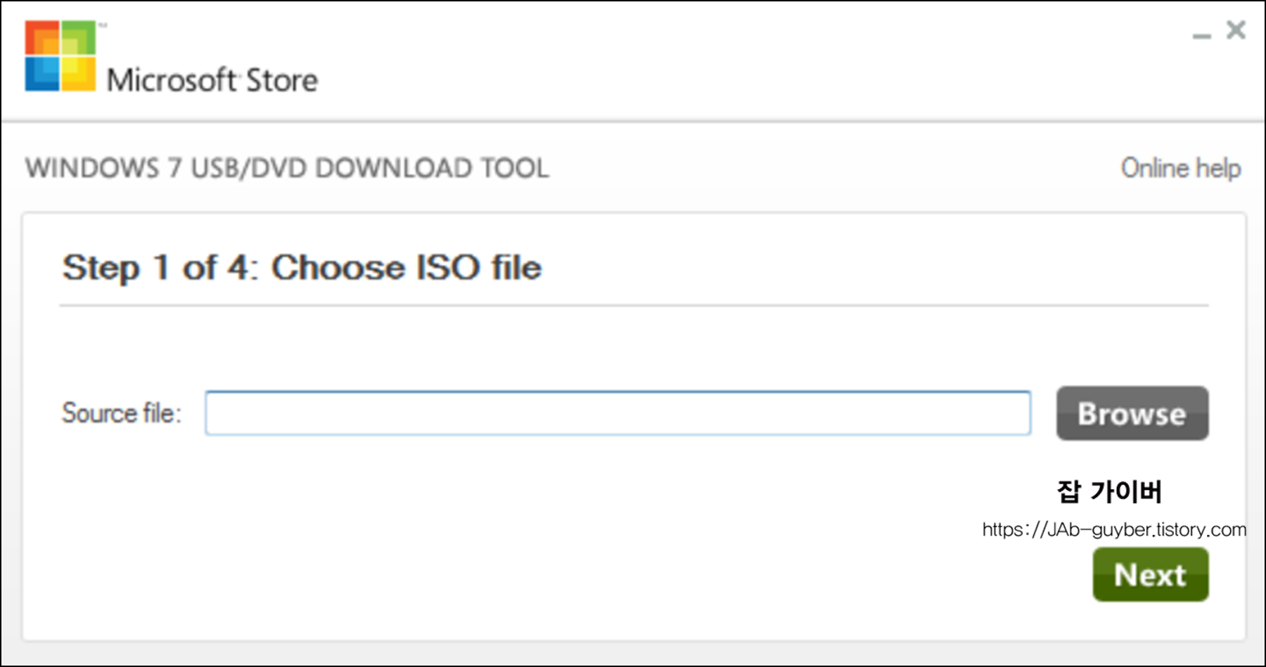 설치 완료 후 Windows 7 USB DVD Download Tool을 실행합니다.
