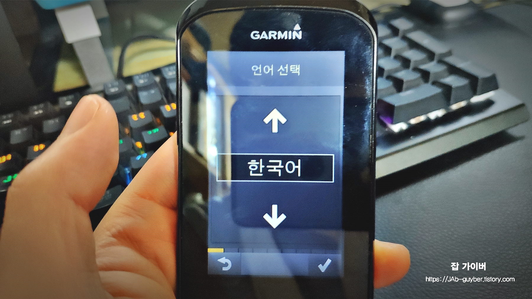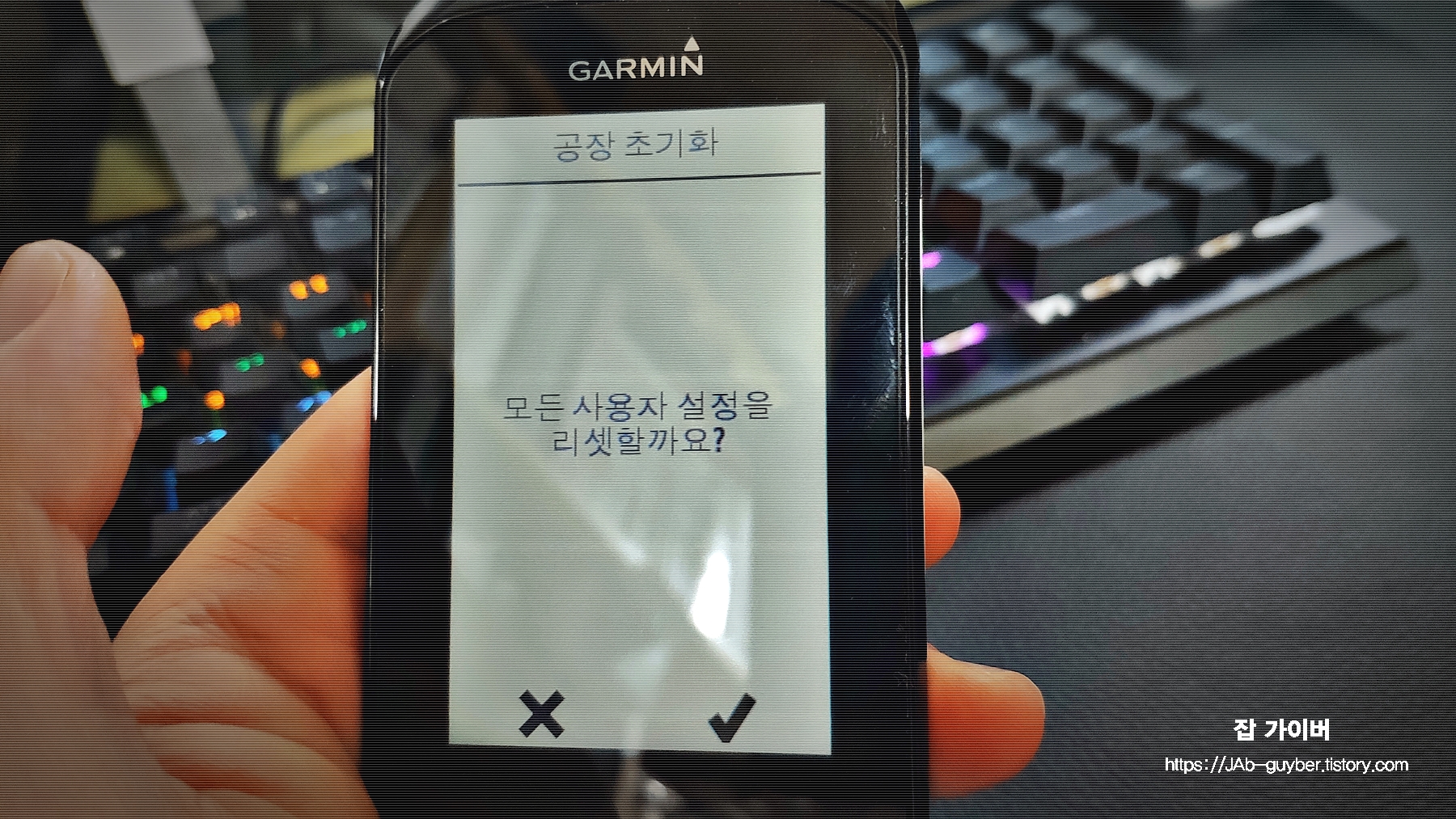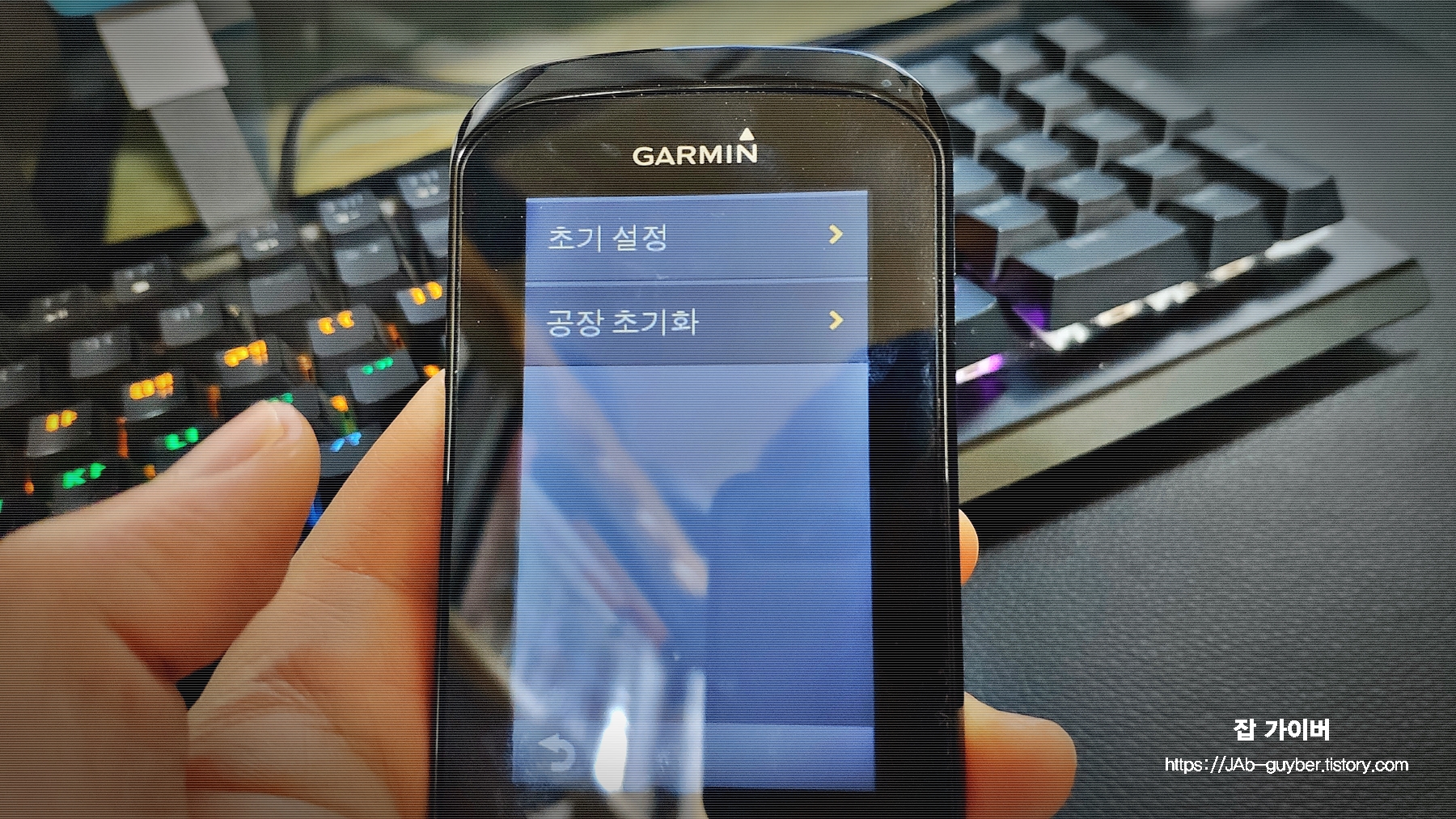 초기설정을 누르면 가민의 초기가 구입시 입력하는 정보화면으로 넘어가집니다.