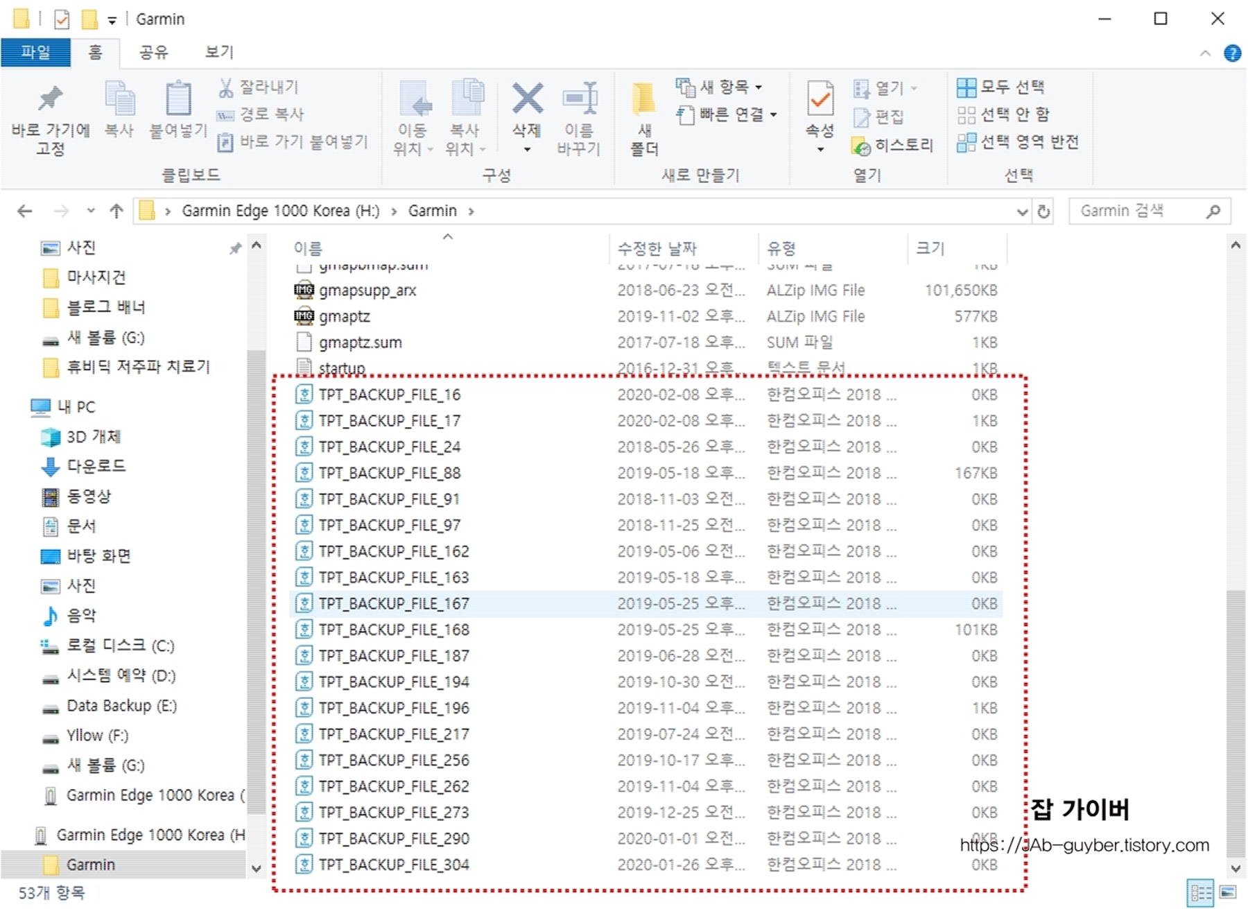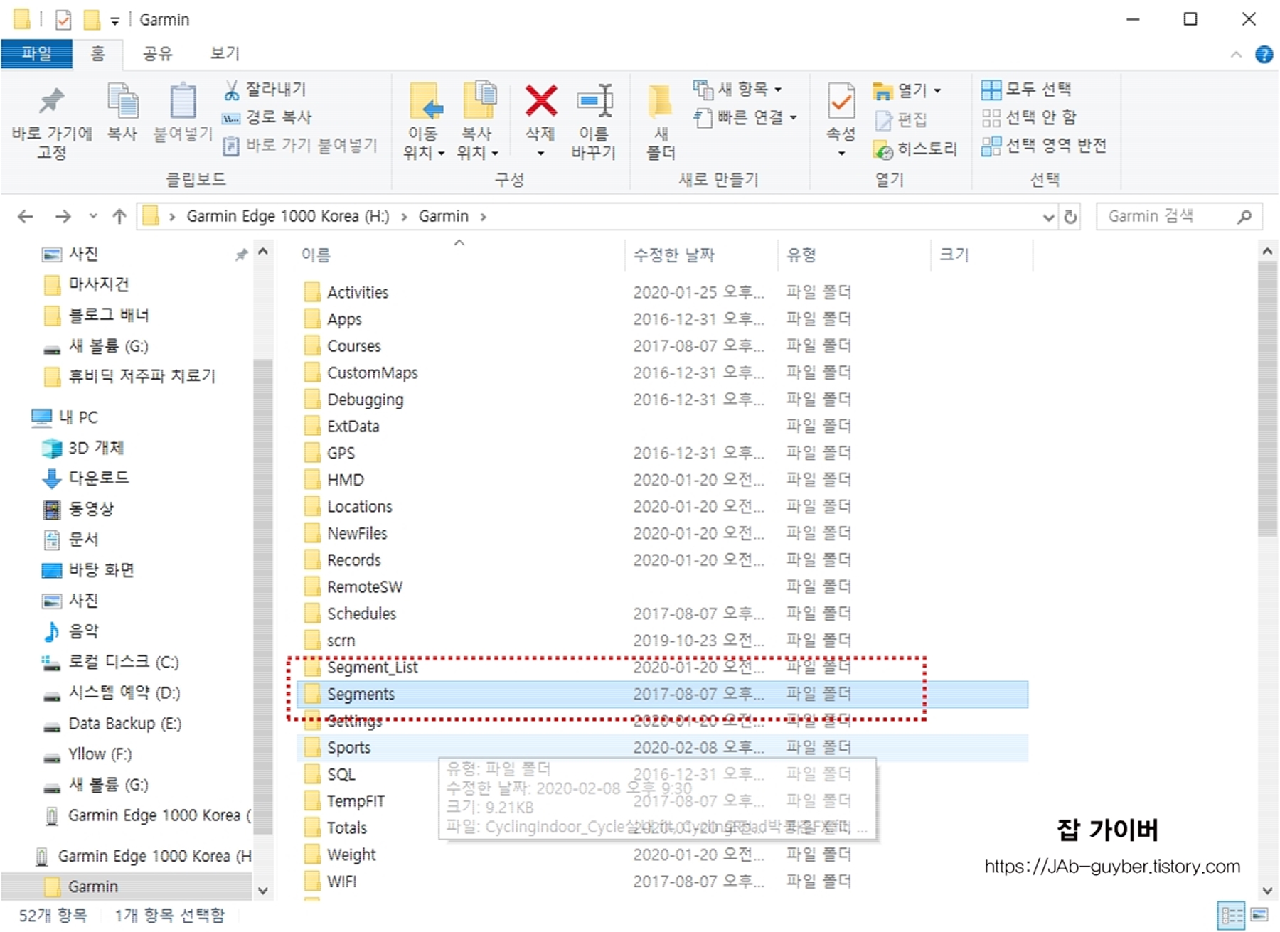 해당 폴더는 지금까지 가민으로 라이딩한 기록들이 저장되는 곳으로 초기화를 하더라도 데이터가 사라지진 않지만 혹시 모르니 필요하다면 저장하세요