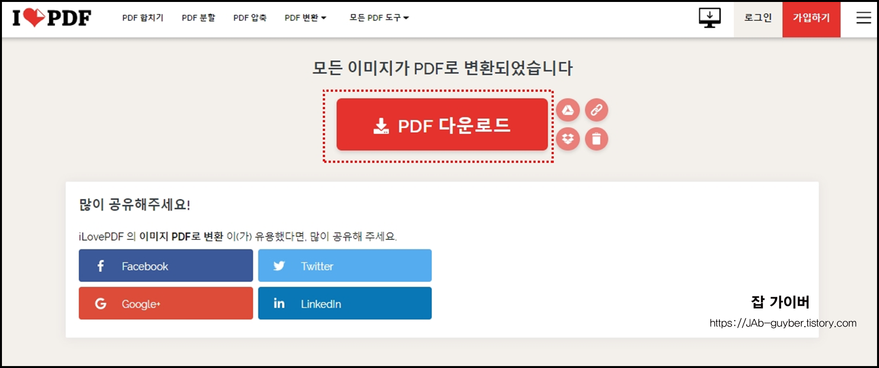 프로그램 설치 없이 PDF를 JPG로 변환하려면 어떻게 하나요?