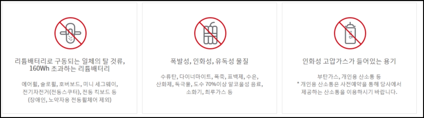 이러한 탑승금지 품목에 대해 위반시에는 최대 2천만원 이하의 벌금이 나올 수 있으니 모두 참고하시길 바랍니다.