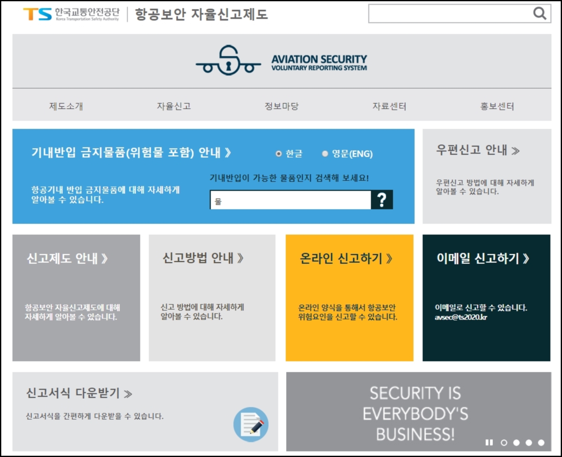 홈페이지에 접속 후 기내반입 금지물품 (위험물 포함)에 대해 궁금한 품목을 검색해보세요