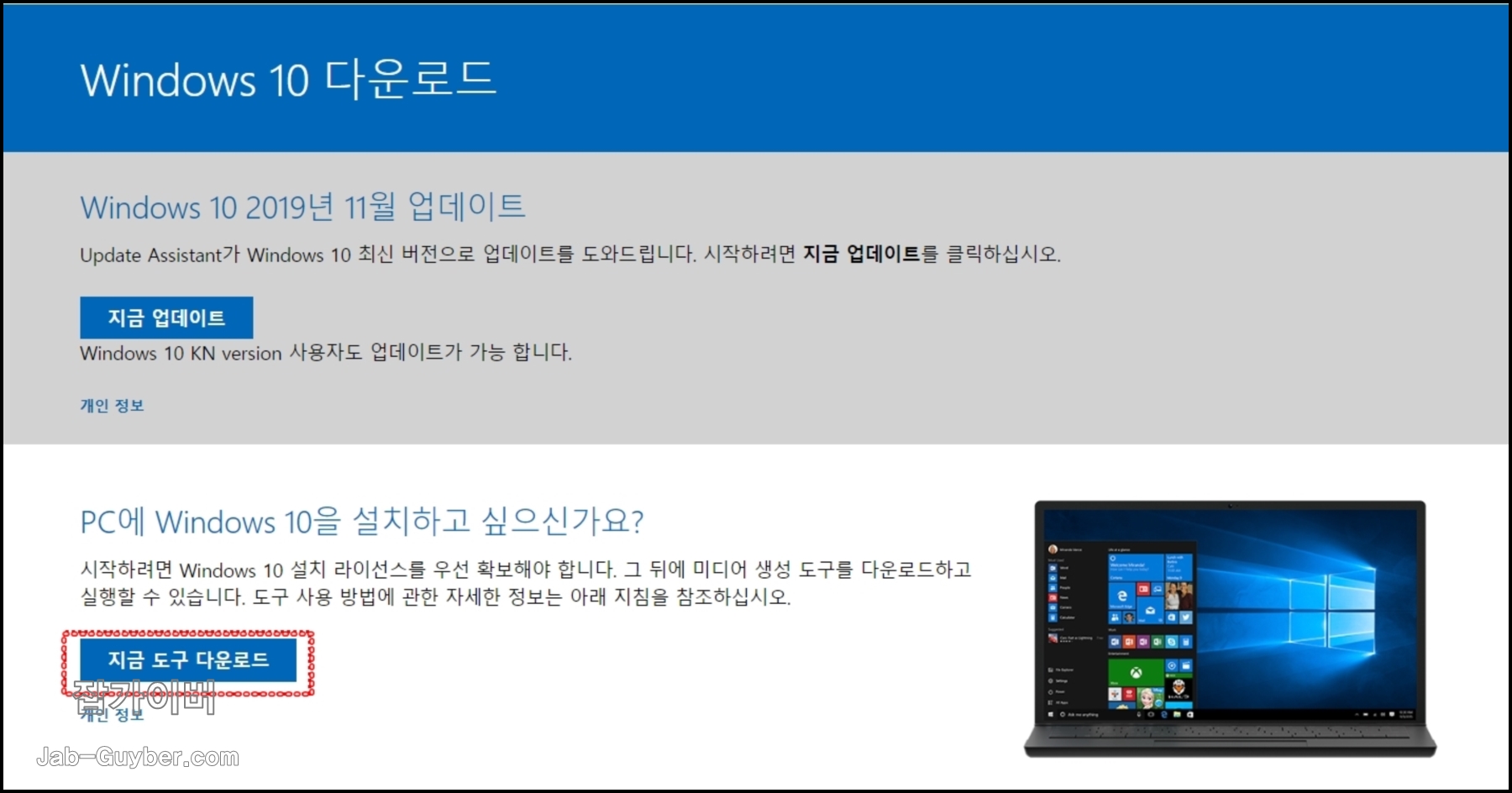 페이지에 접속한 후 "지금 도구 다운로드" 버튼을 클릭하면 다운로드가 진행됩니다. 이 도구는 윈도우10을 설치하는 데 필요한 모든 파일을 자동으로 준비해 줍니다.