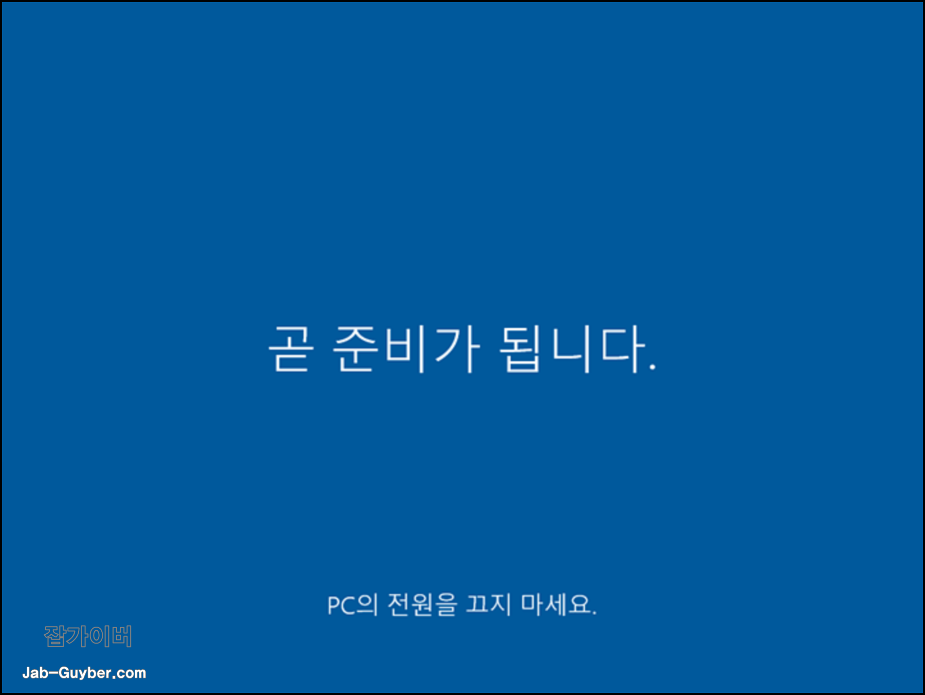 설치가 완료되면 컴퓨터가 재부팅이 진행되며 이때 컴퓨터에 꼽아놨던 "윈도우10 USB 부팅디스크" 제거합니다.