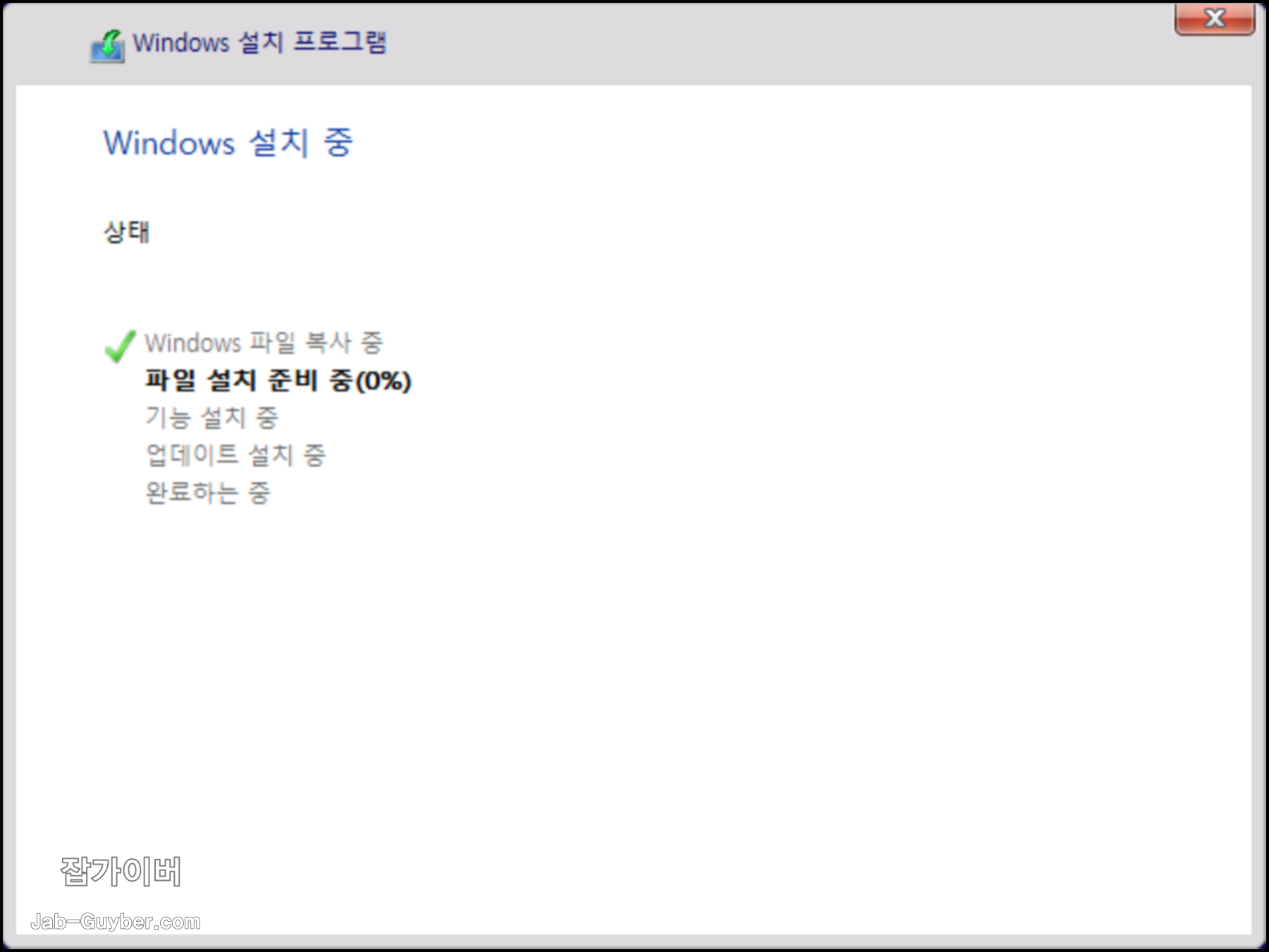 부팅디스크를 만들었다면 USB를 컴퓨터에 꼽고 컴퓨터를 재부팅을 하면 자동으로 윈도우10 설치가 진행됩니다.