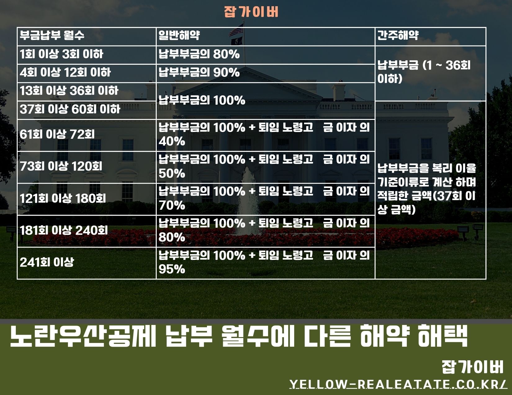 | 1회 이상 3회 이하 | 납부부금의 80% | 납부부금 (1 ~ 36회 이하) |