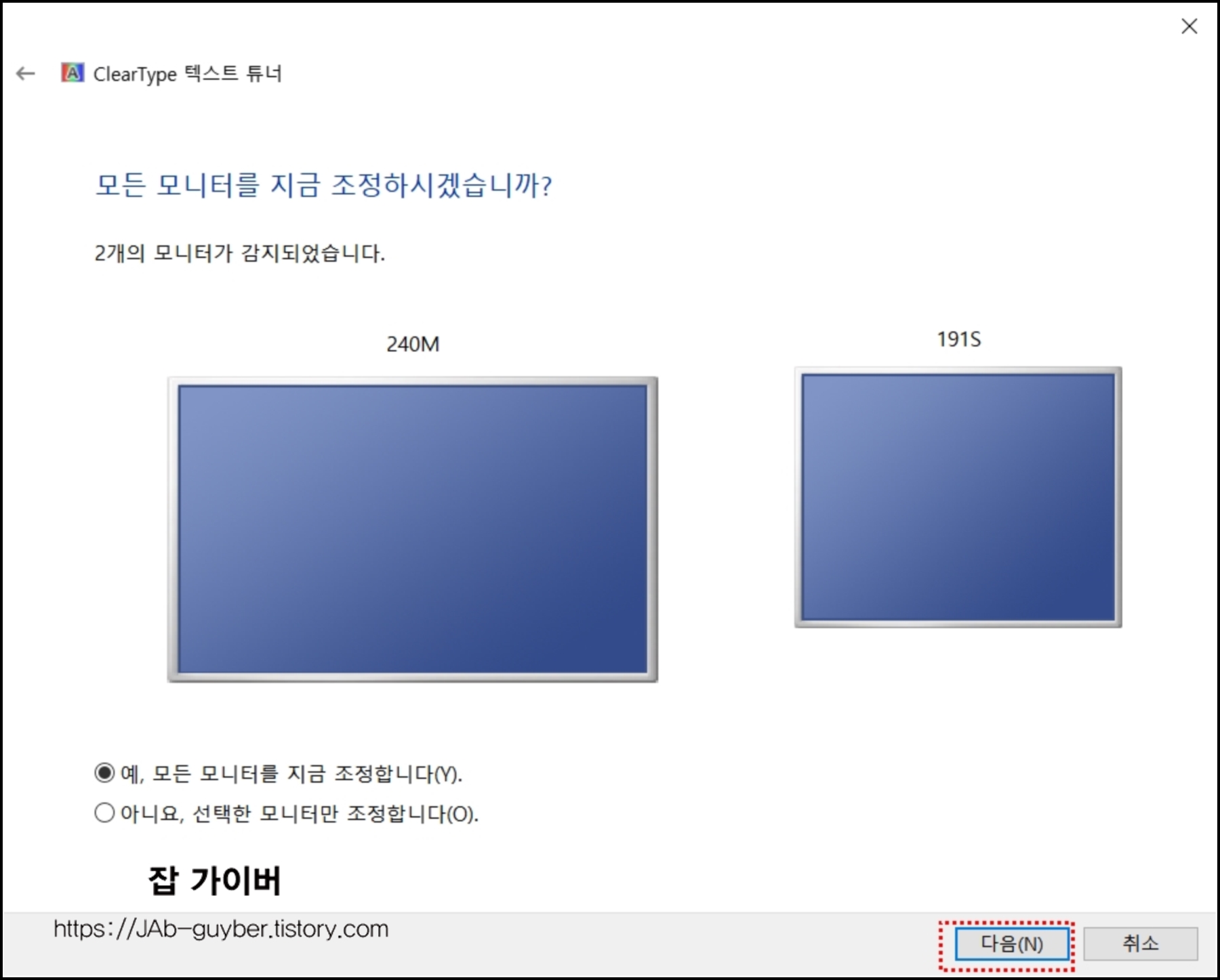 모니터 텍스트 선명하게 설정 ClearType 텍스트 튜너