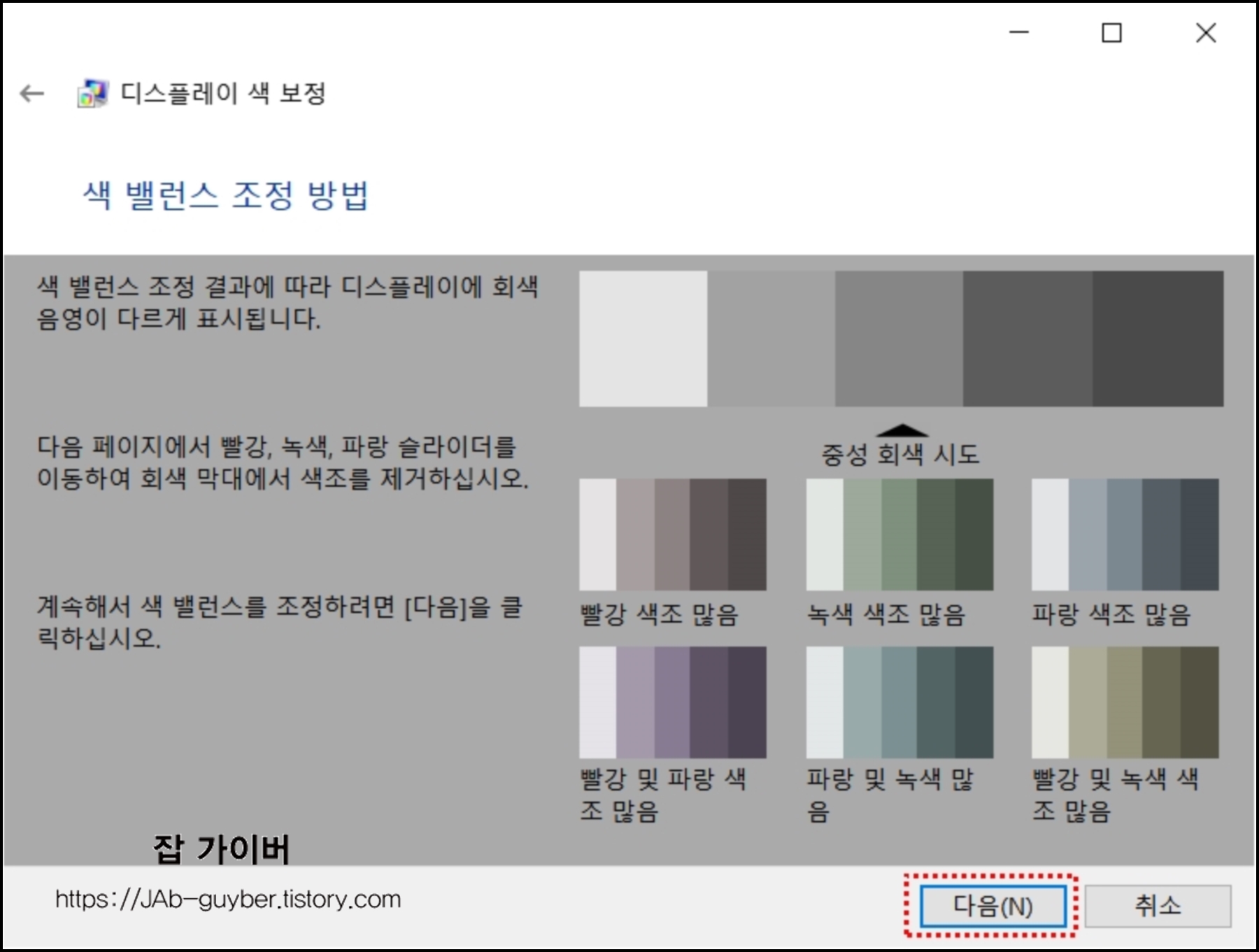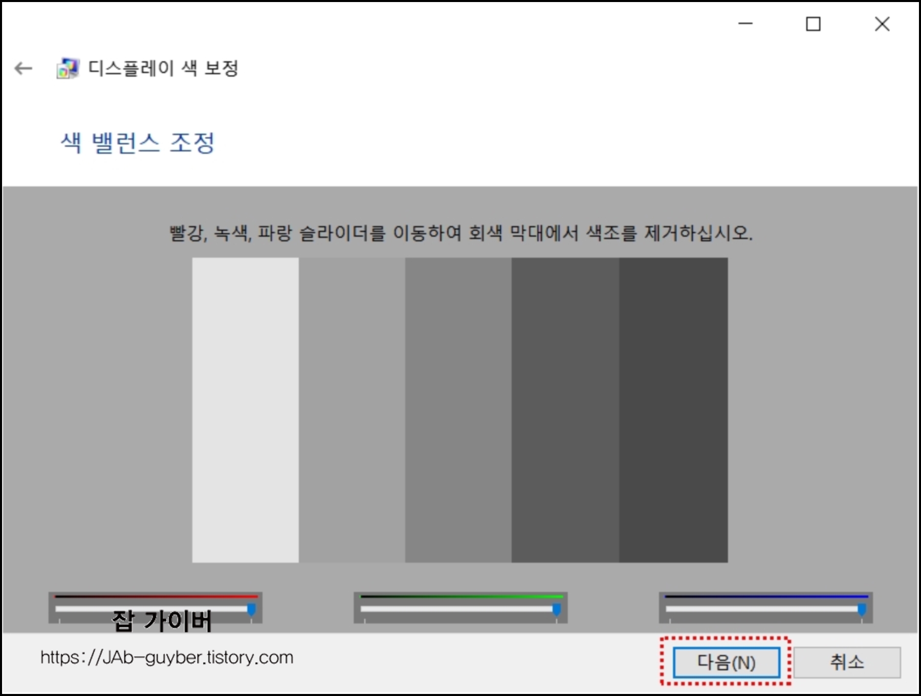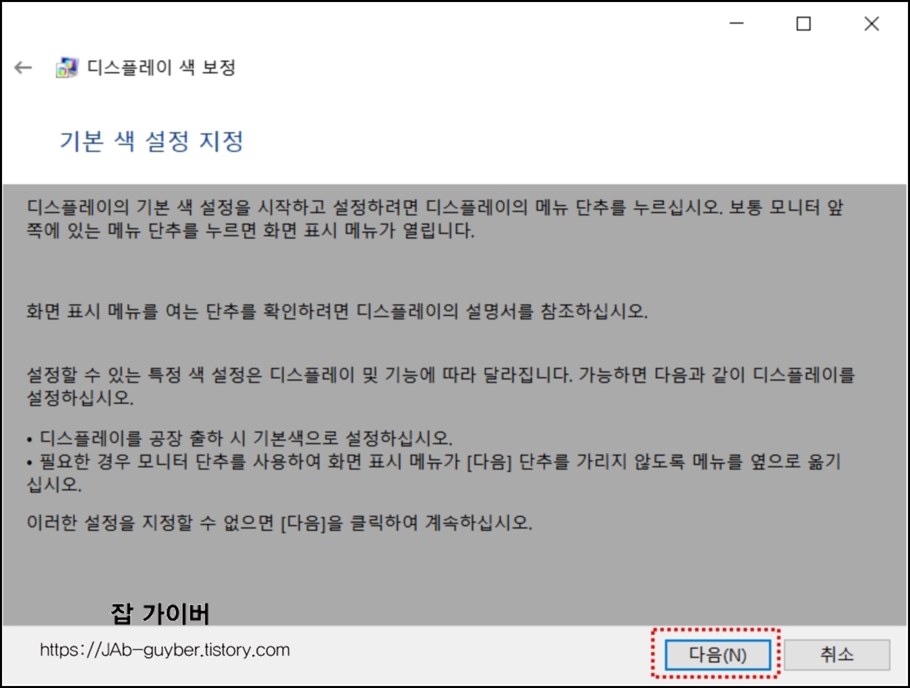 기본 색 설정 및 감마 조정을 윈도우10 자체 기능을 통해 설정할 수 있습니다.