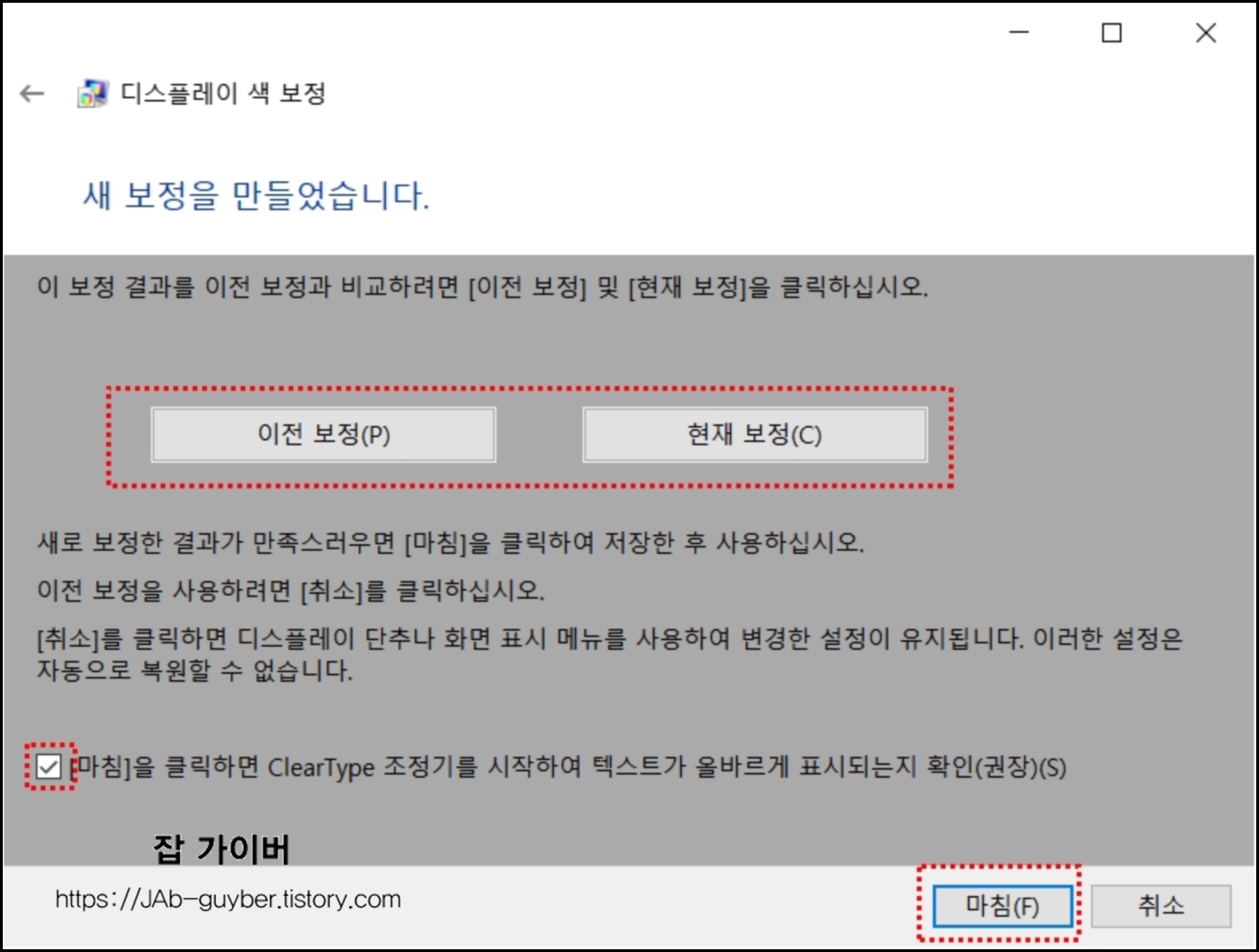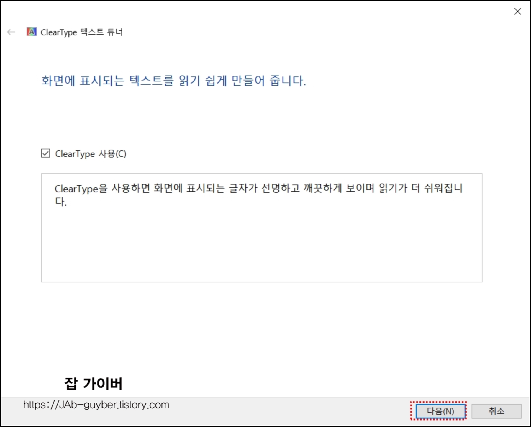모든 작업이 완료되면 클리어 타입 텍스트튜너가 실행됩니다.