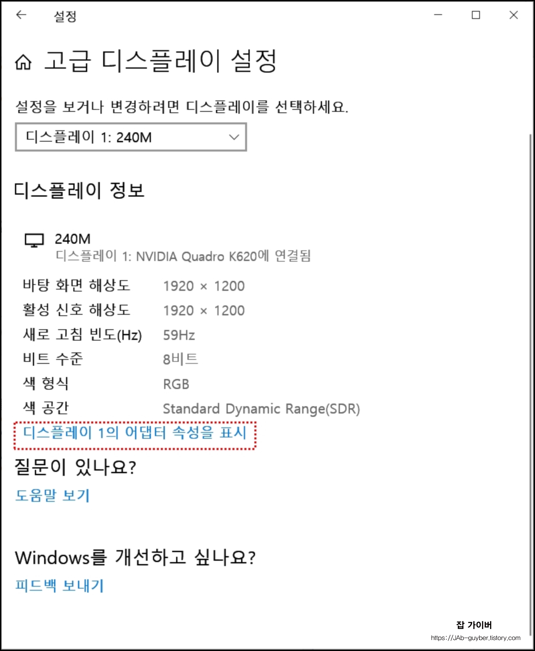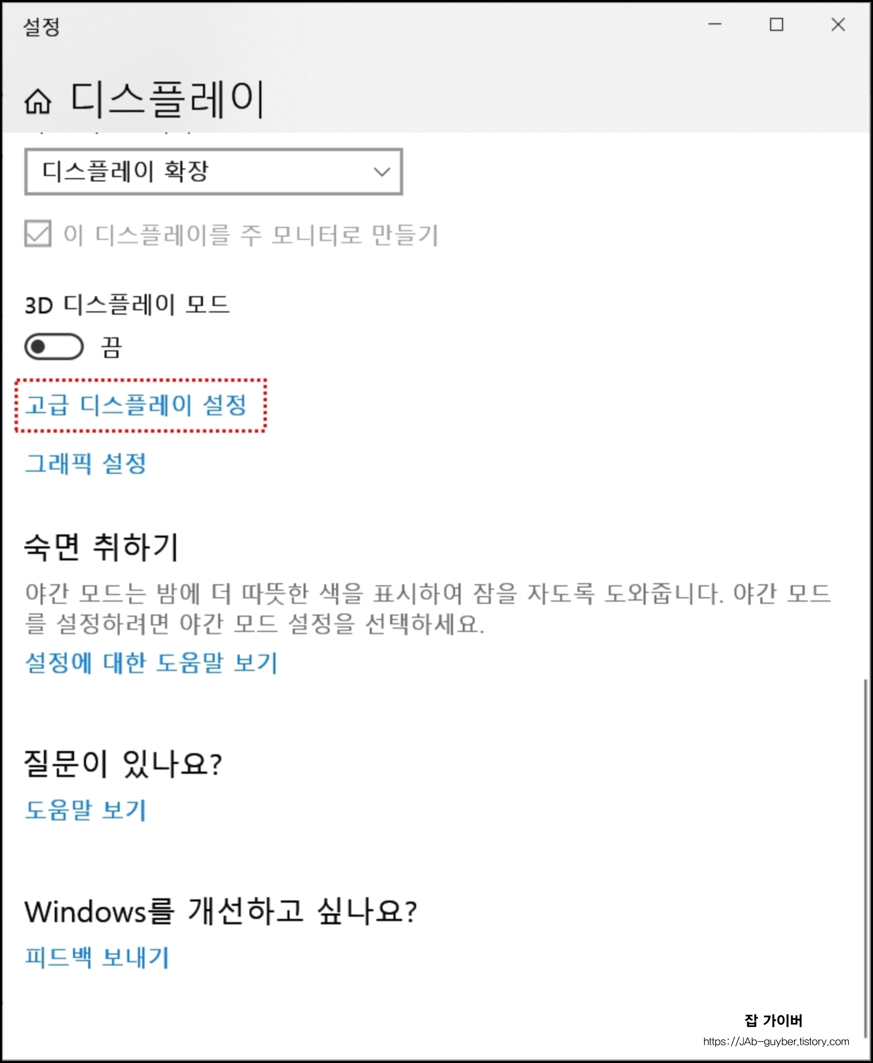 윈도우10 고급 디스플레이 설정