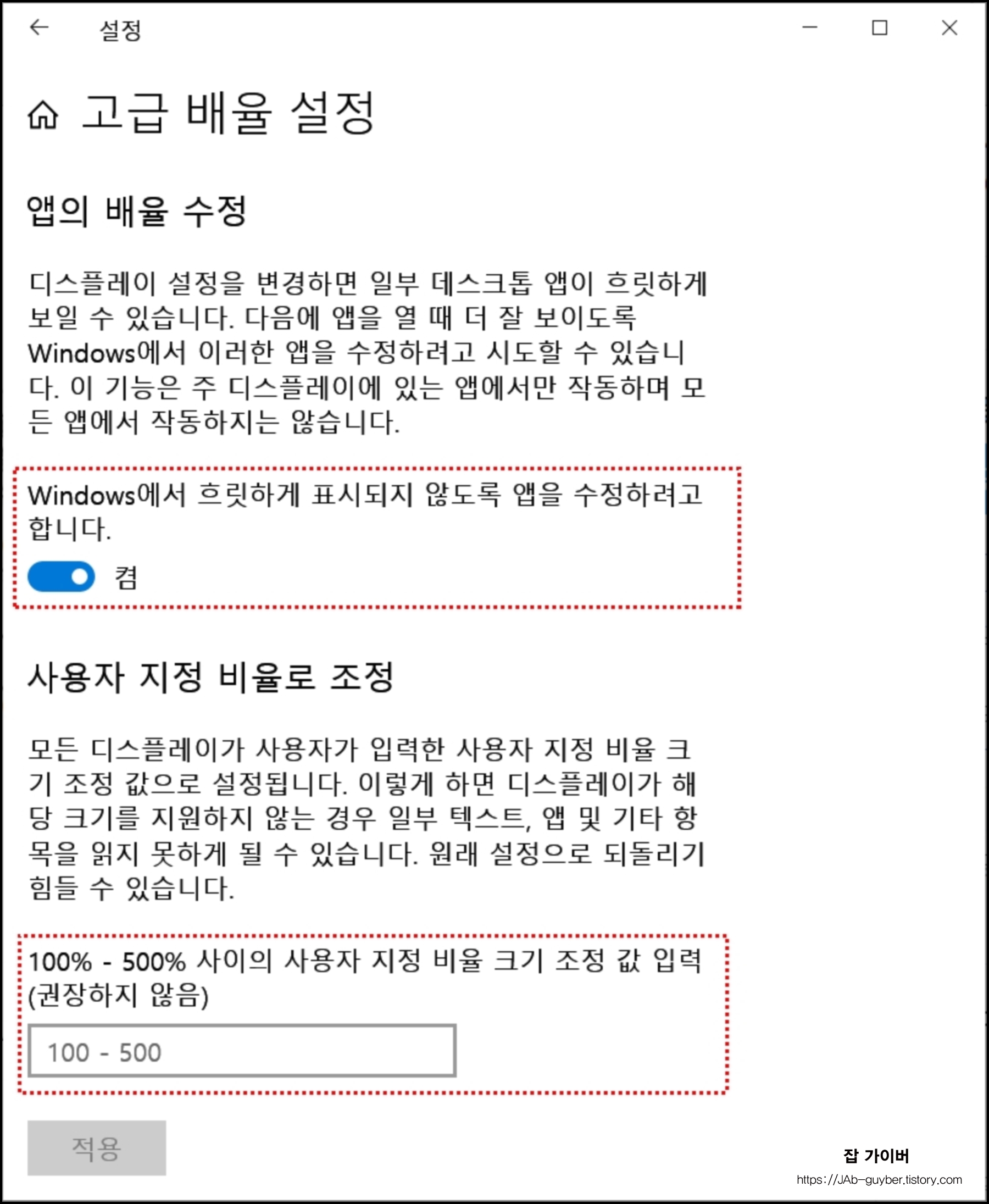 윈도우10 흐린 앱 수정