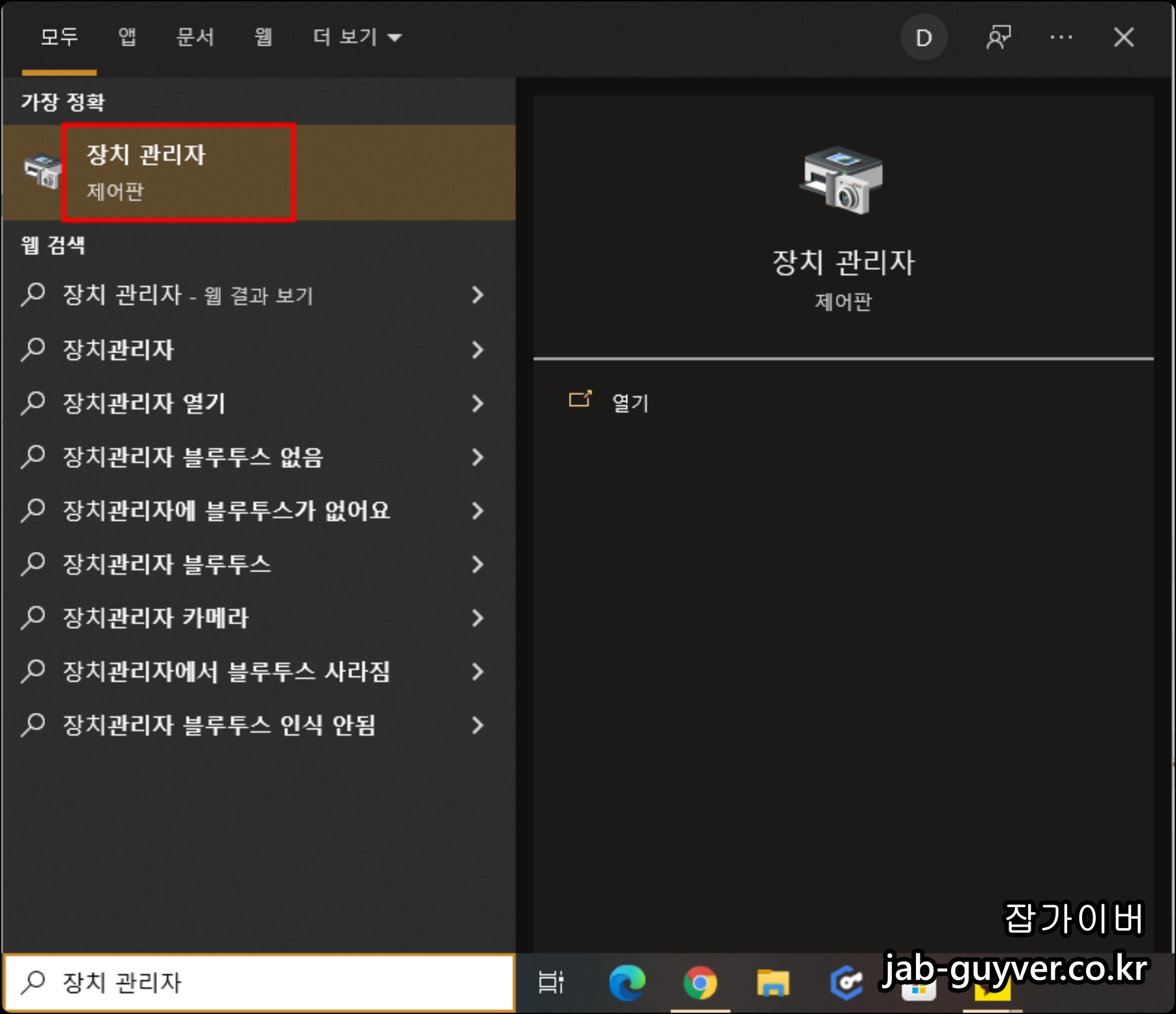 컴퓨터 및 노트북의 블루투스 및 USB 키보드 마우스등이 연결 페어링이 안되거나 블루투스 인식이 안된다면 장치관리자로 들어갑니다.